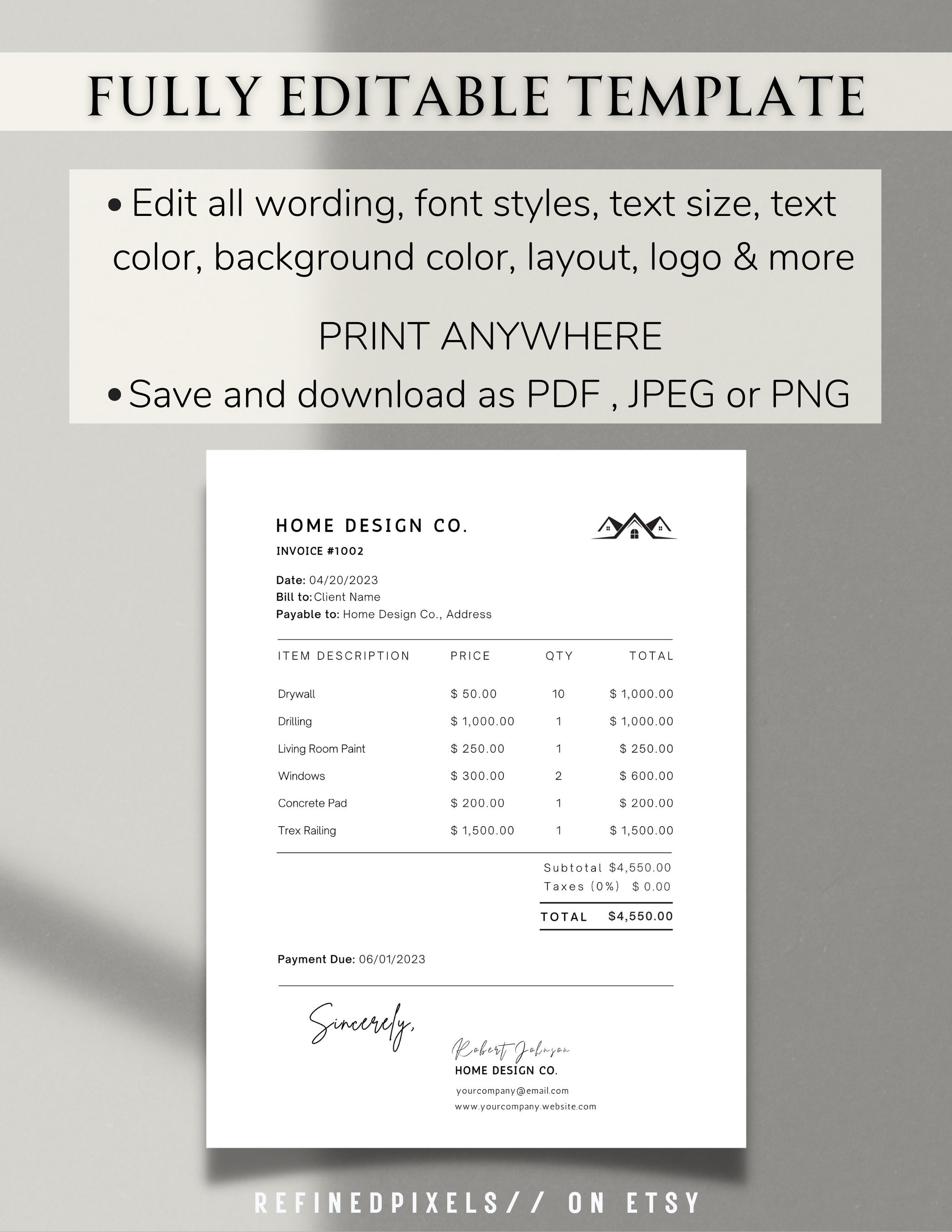 Customizable Invoice Template INSTANT DOWNLOAD Editable - Etsy