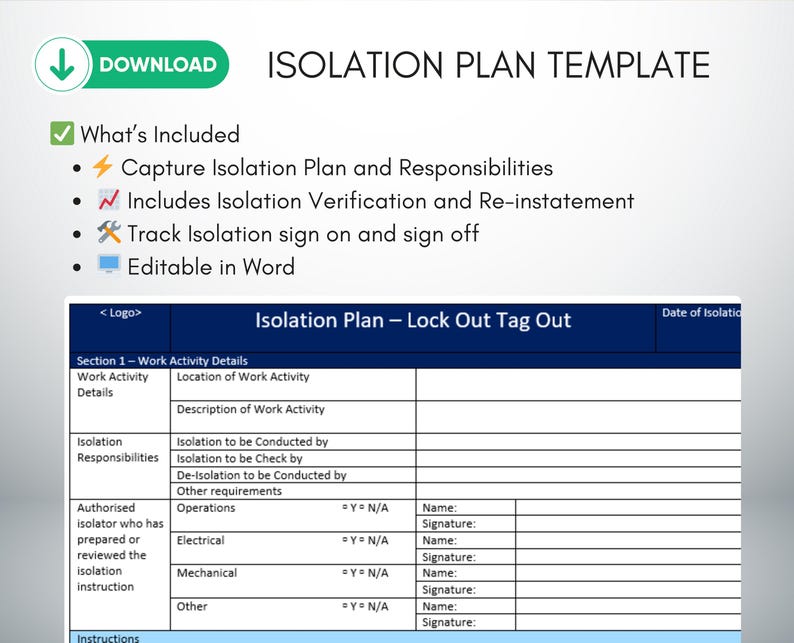 Isolation Plan Template | Lock Out | Tag Out | Permit to Work ...