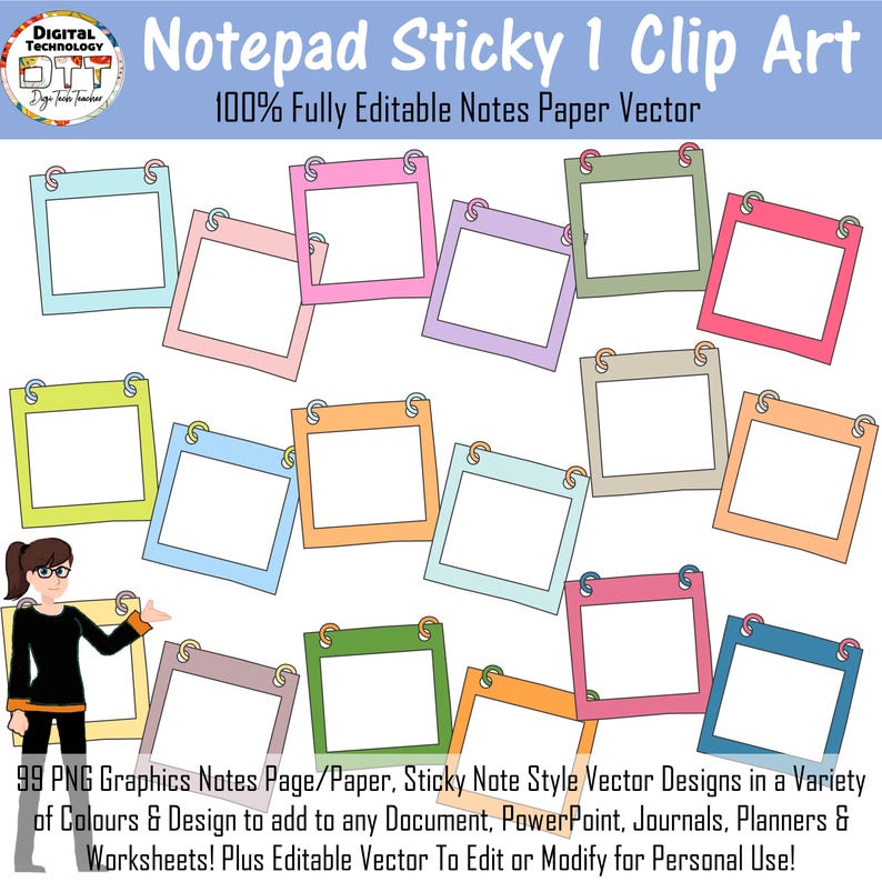 Sticky Note Clipart: 99 Editable Vector PNG Graphics - Etsy