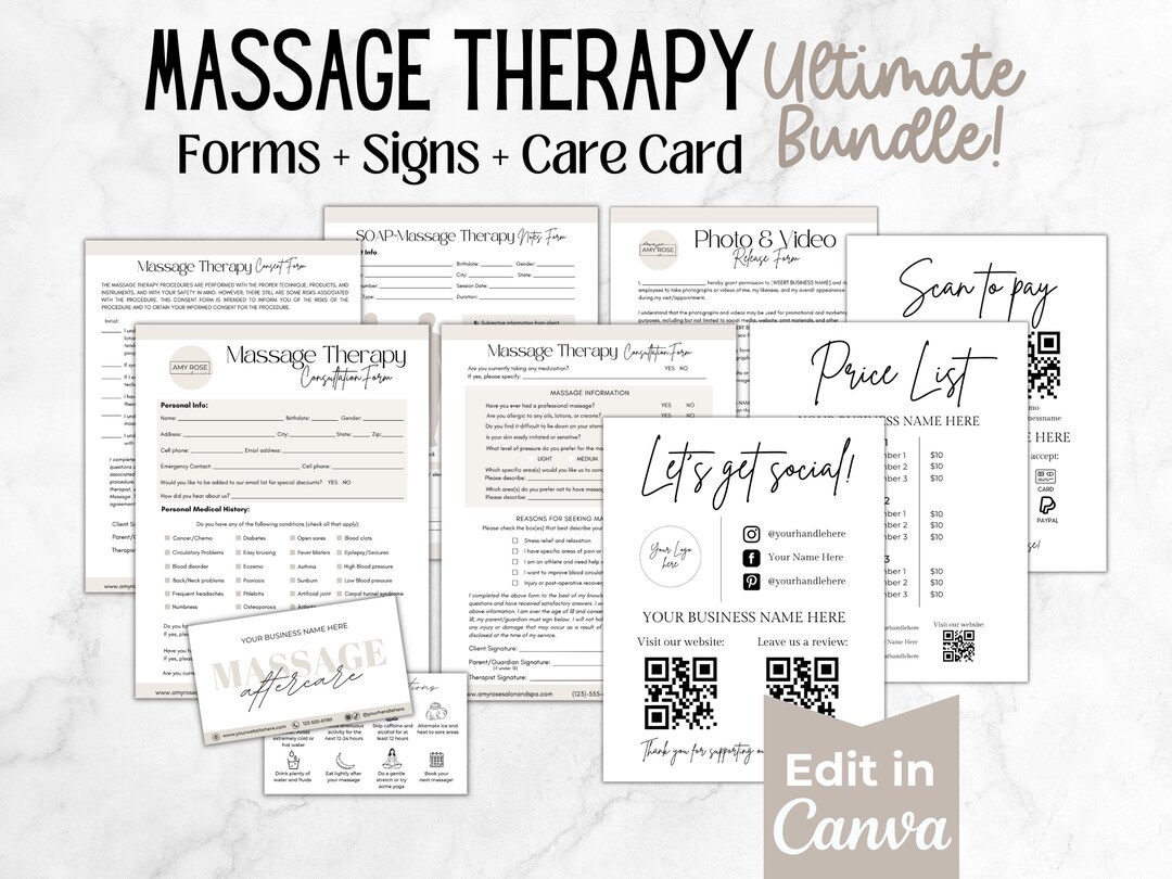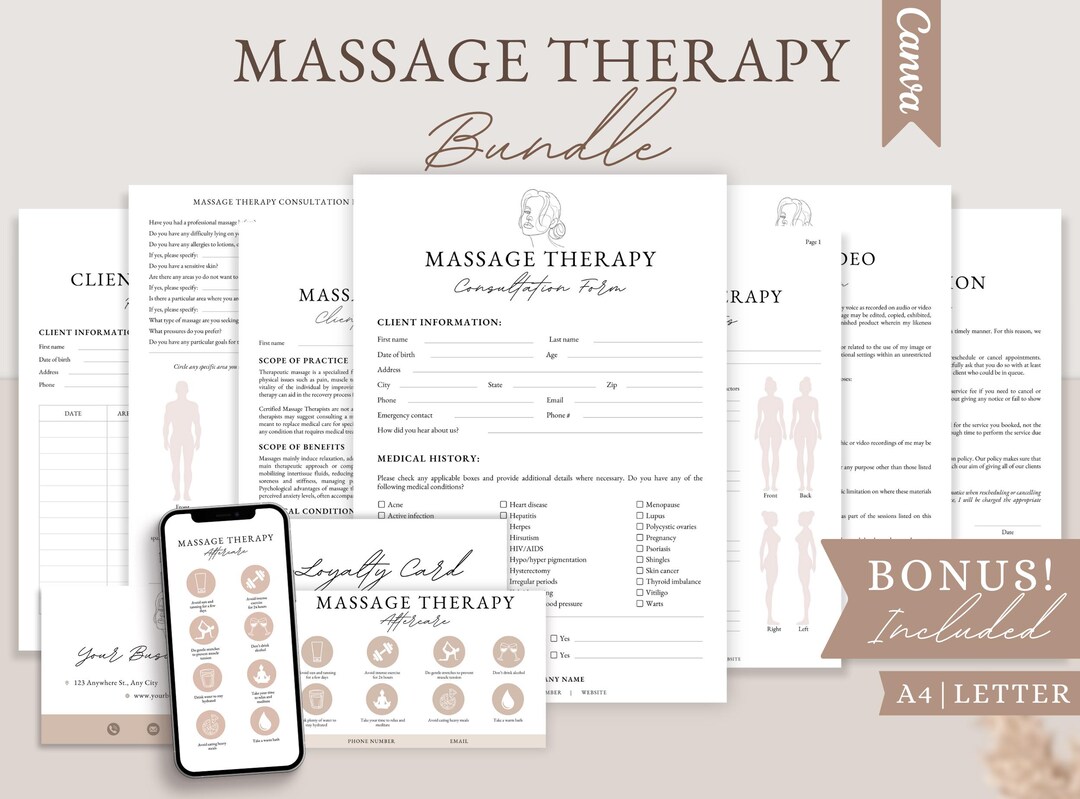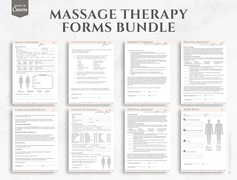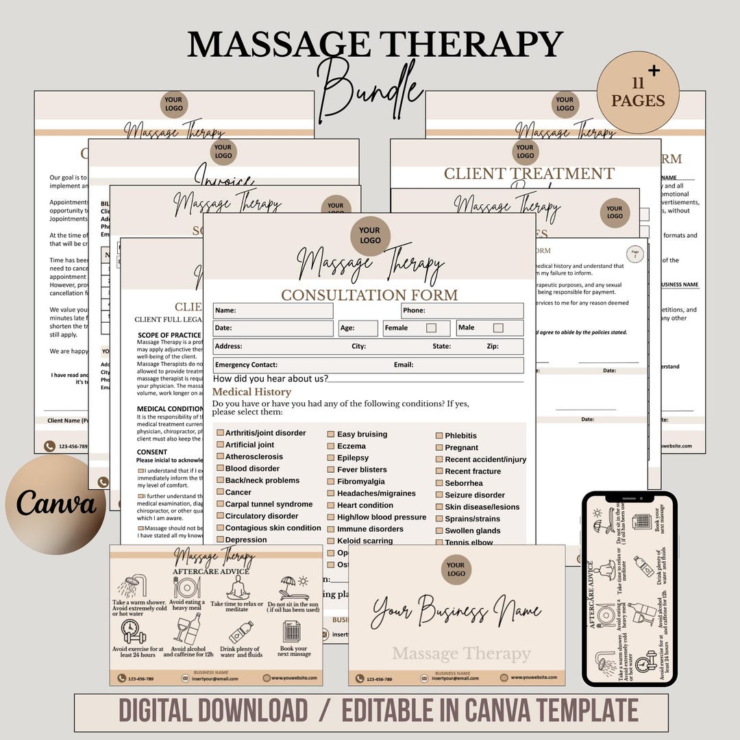 Editable Massage Therapy Forms Bundle, Massage Therapy Business ...