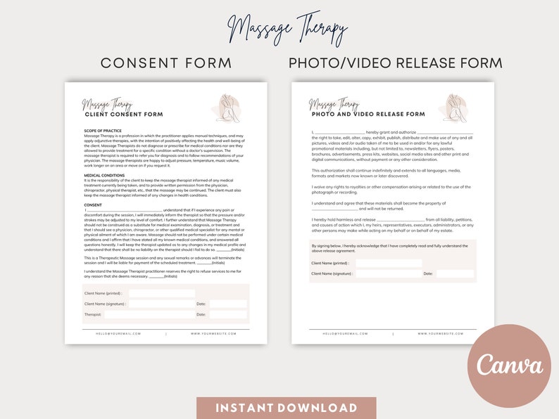 Massage Therapist Forms Editable Massage Consent Form - Etsy