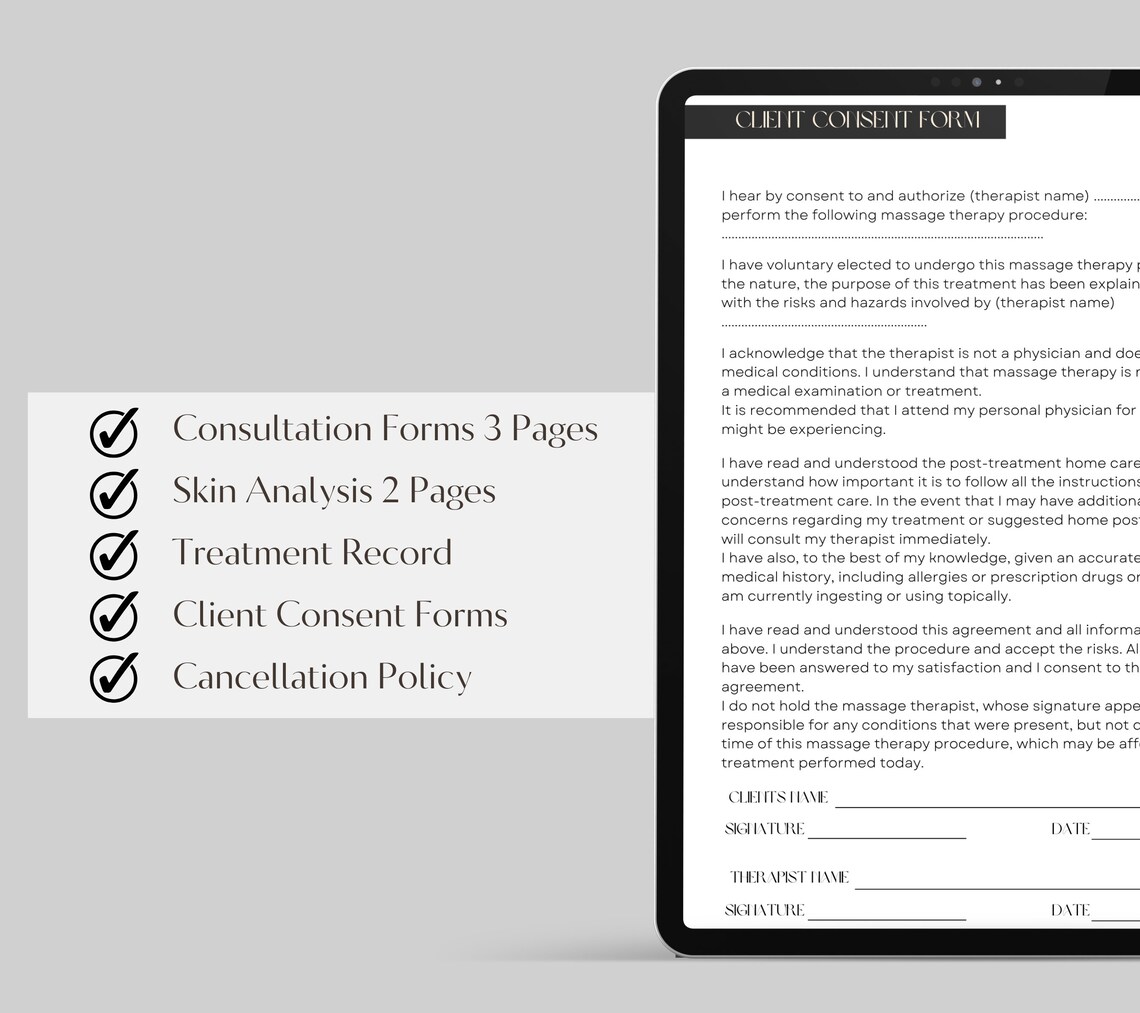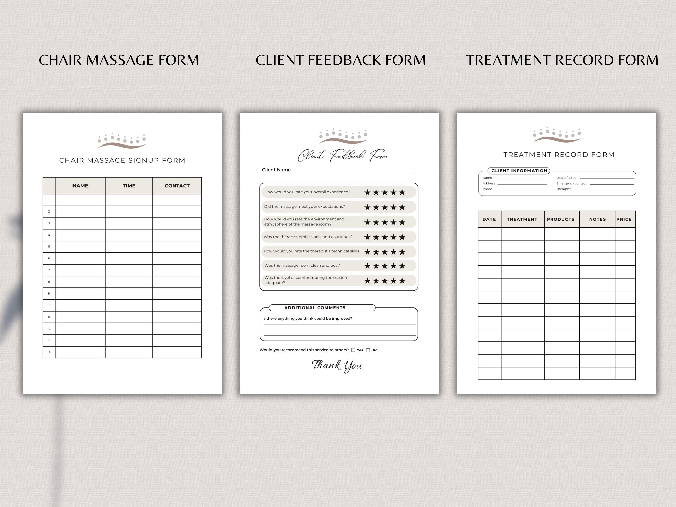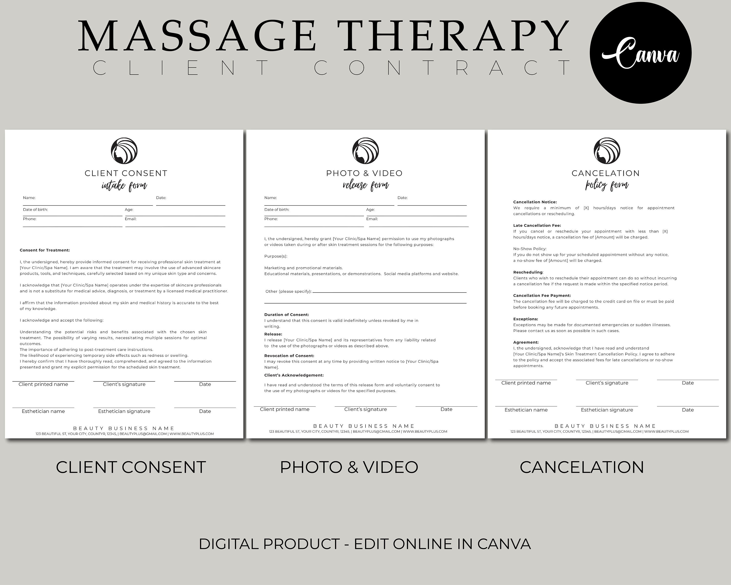 Editable Massage Therapy Business Forms for Estheticians, Massage ...