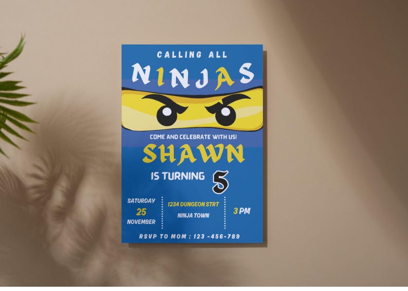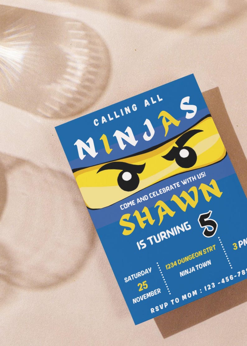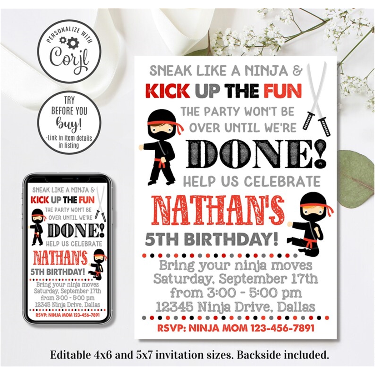 Ninja Invitation Template 5x7 and 4x6 + Free bonus. Unleash the Ninja ...