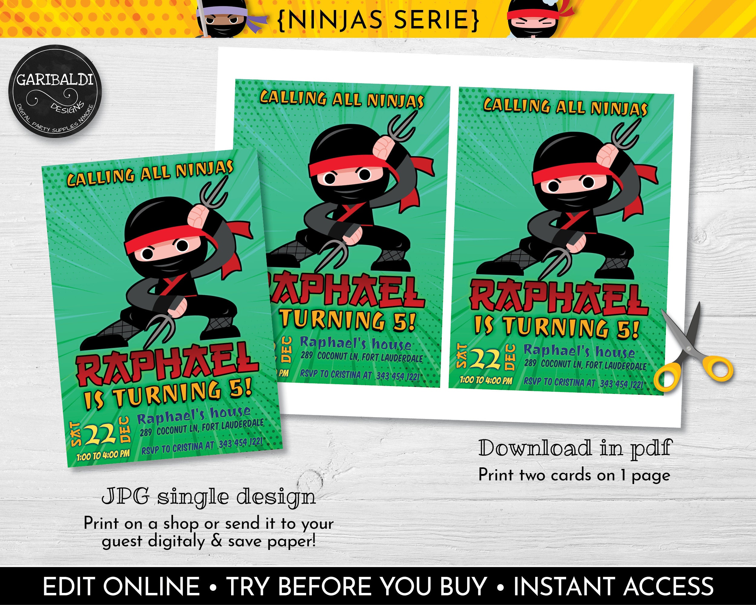 Editable Ninja Invitation, Most Popular Ninja Invite, Digital Kids ...