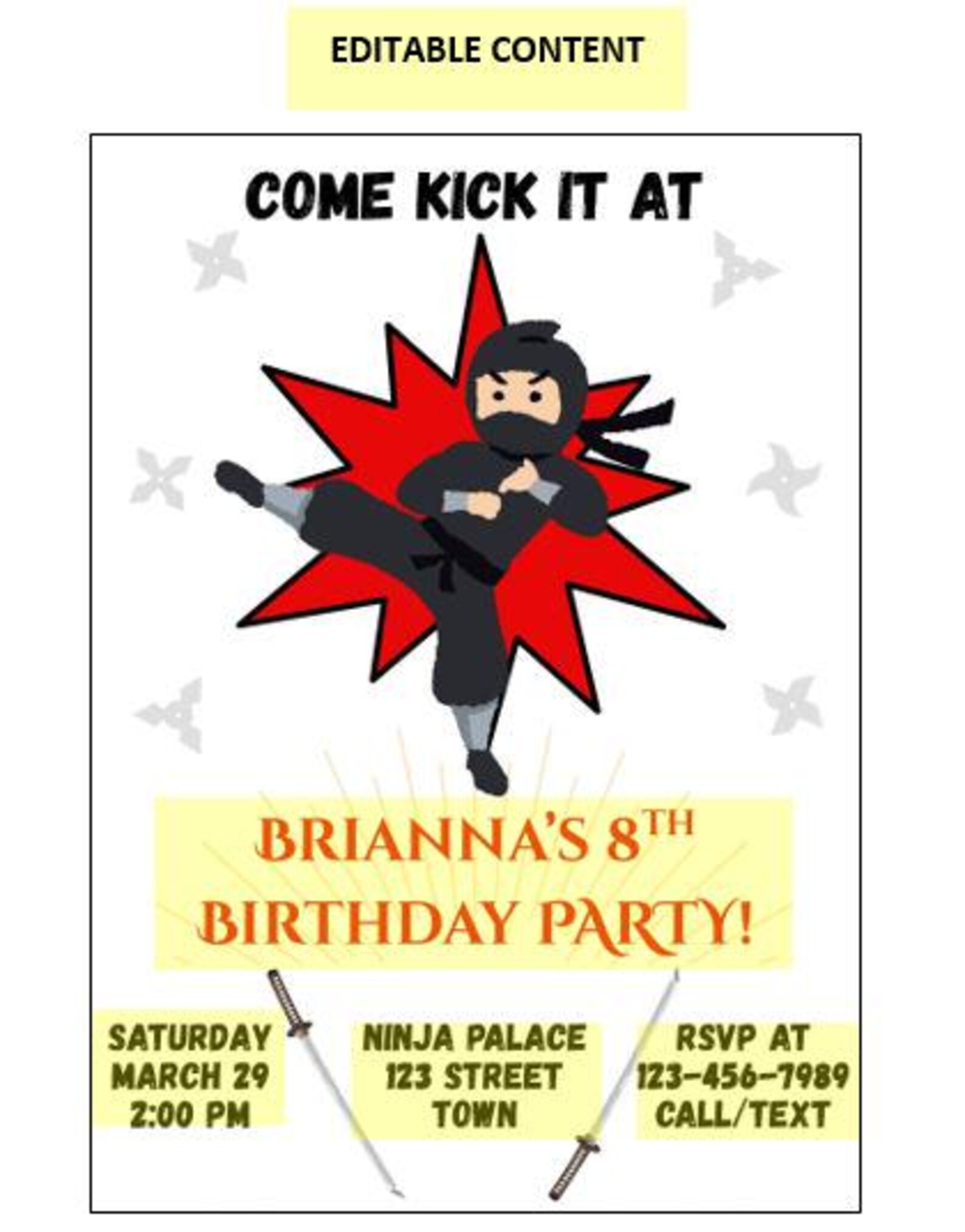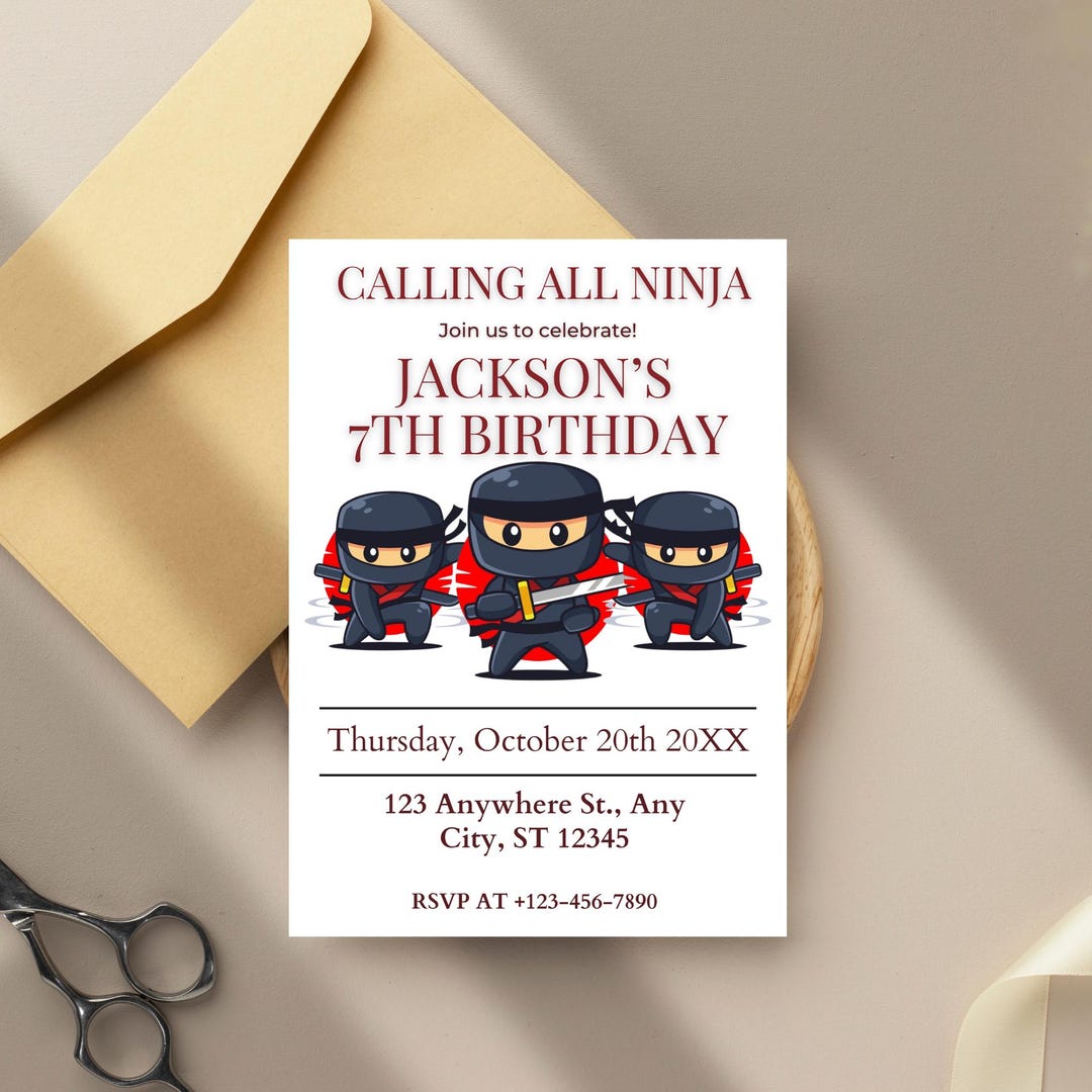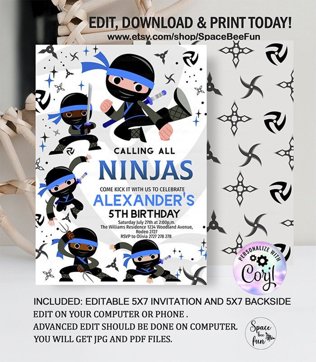 Editable Ninja Birthday Invitation Template (digital Download) - Etsy
