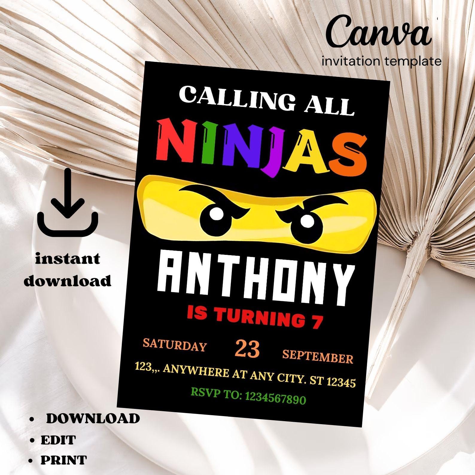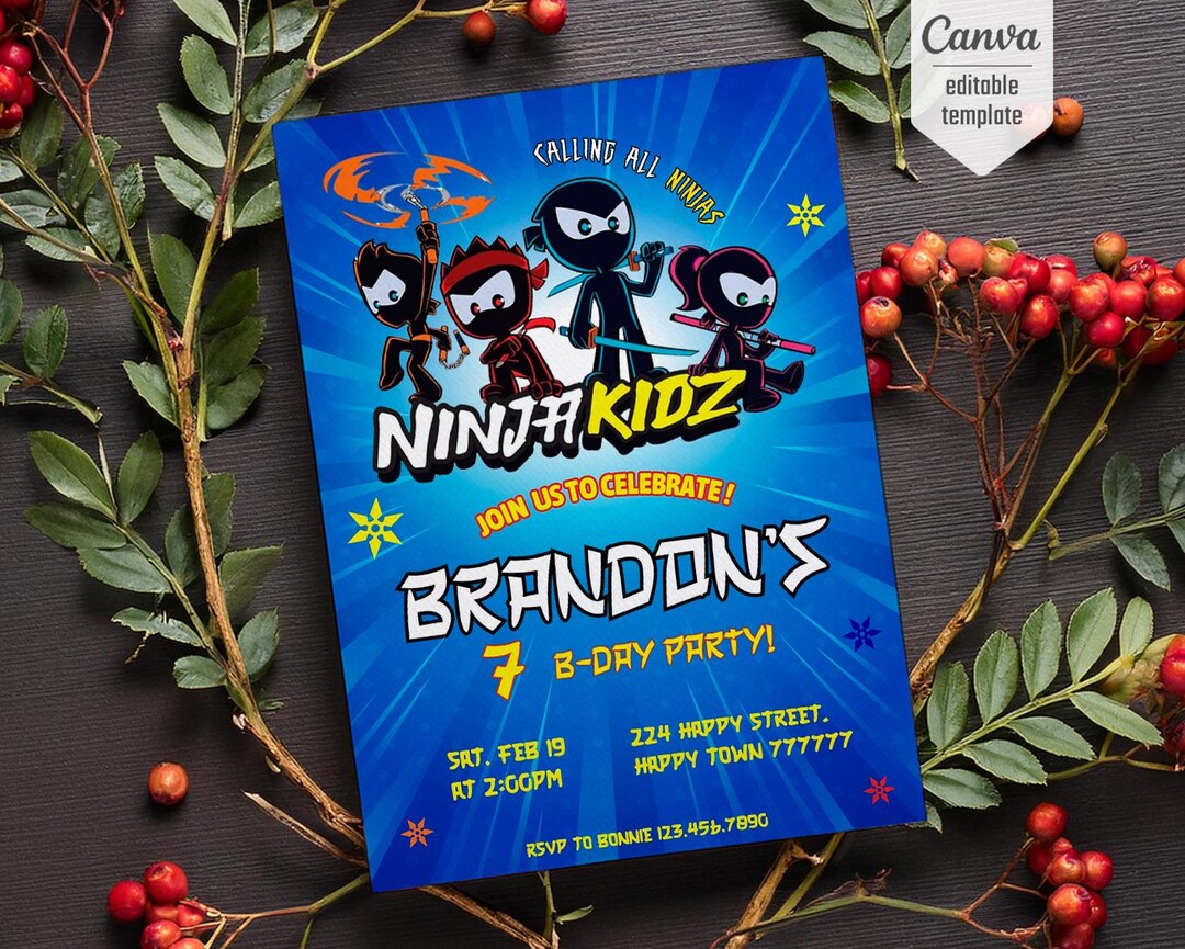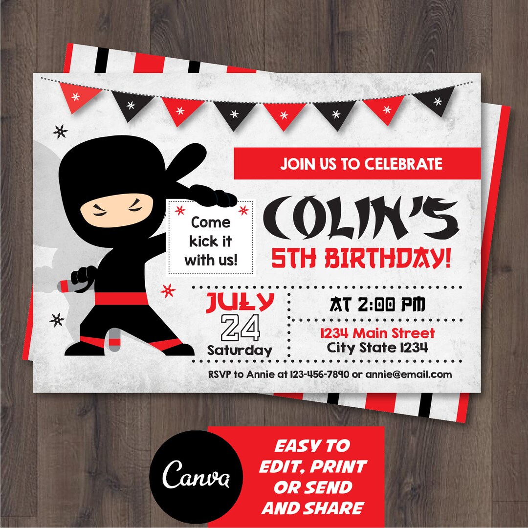 Editable Ninja Birthday Invitation: Canva Template (Digital Download ...