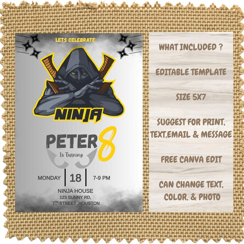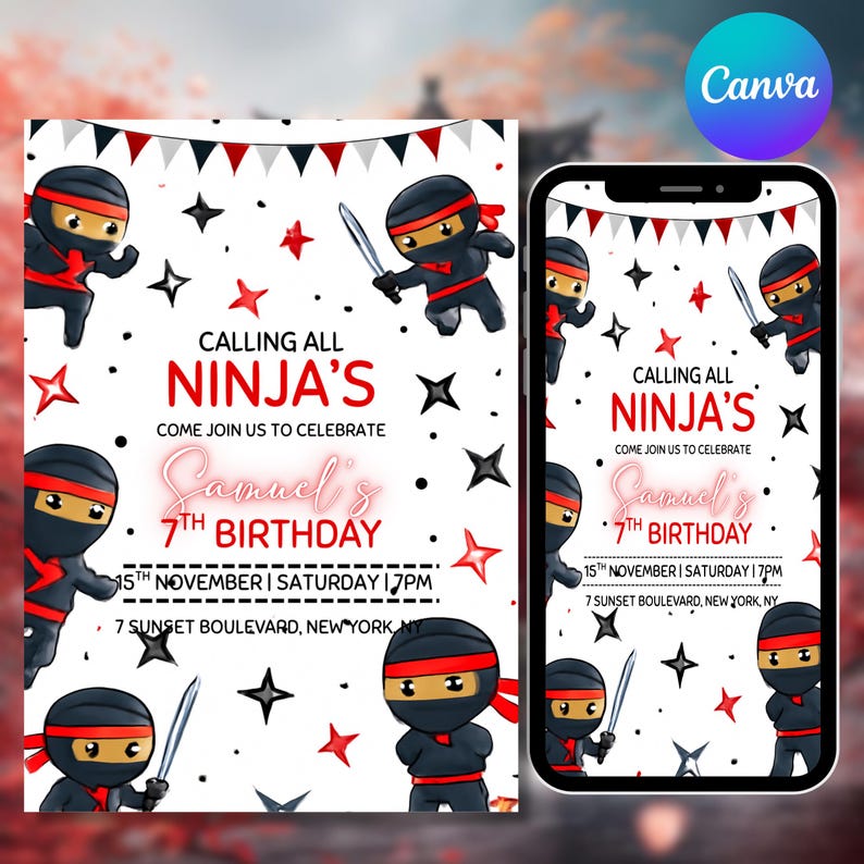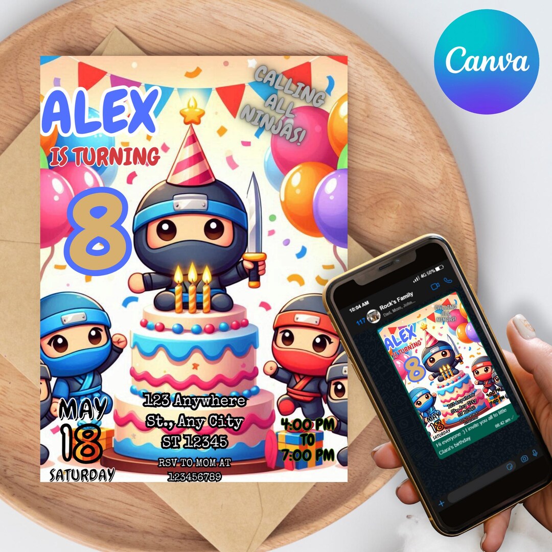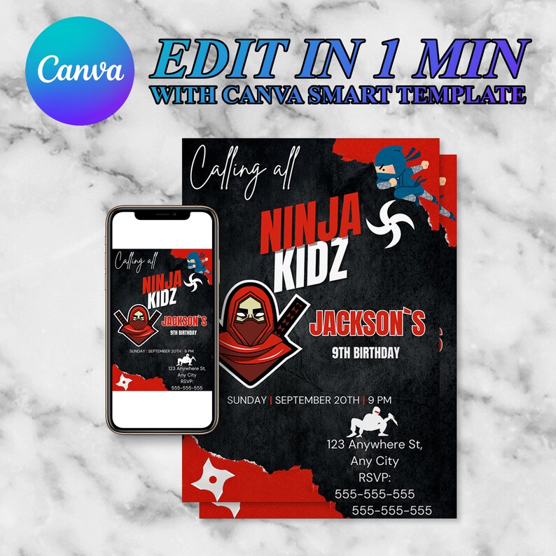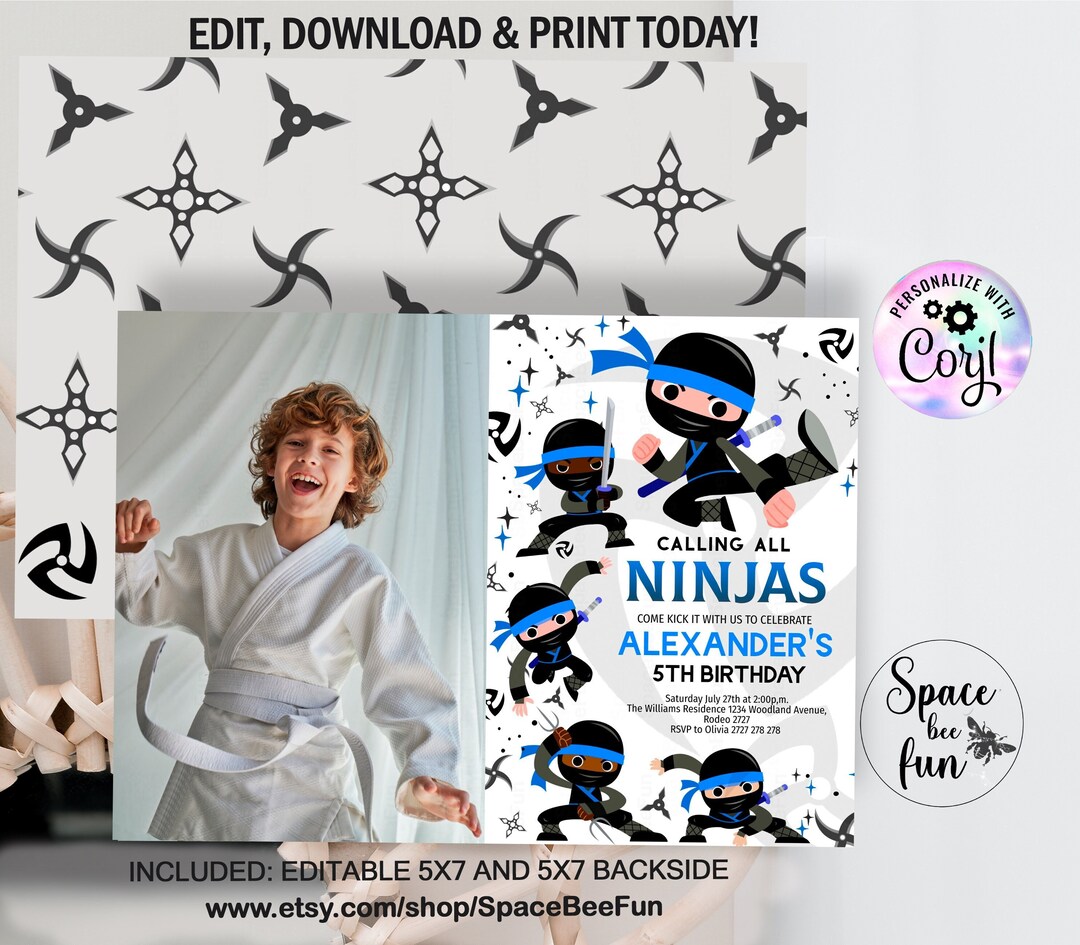 Editable Ninja Birthday Invitation: Canva Template (Digital Download ...