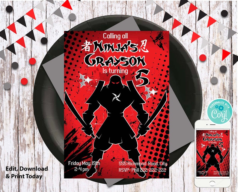 Ninja Birthday Invitations/editable Ninja Invitation/ninja - Etsy