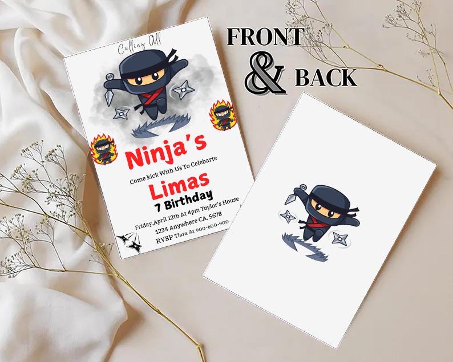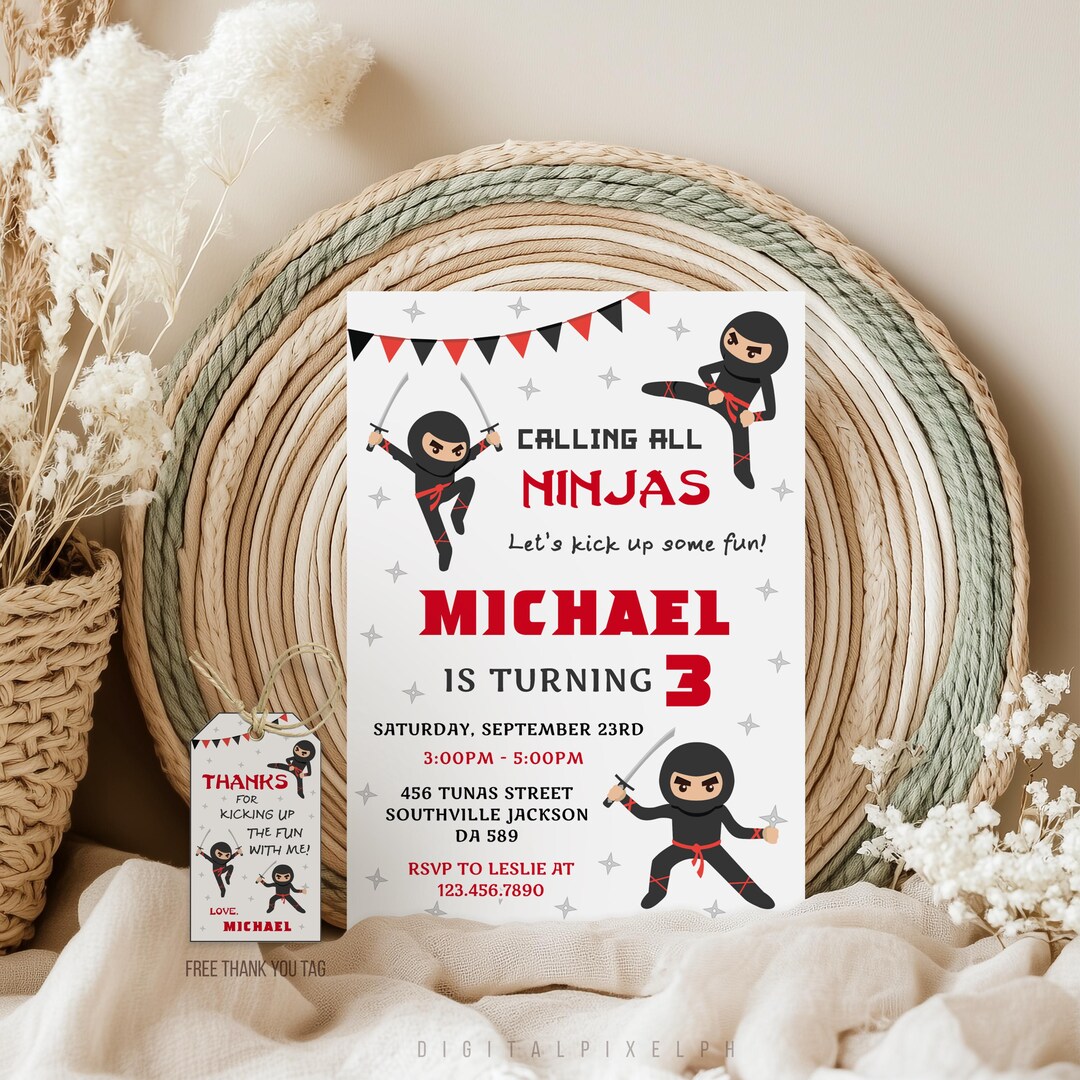 Editable Ninja Birthday Invitation Template With Thank You Tag - Etsy