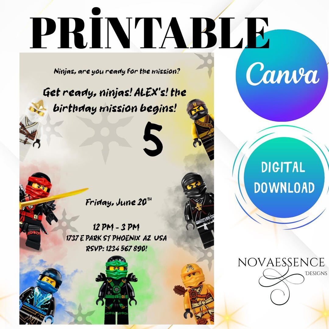 Editable Lego Ninjago Birthday Invitation Template | Awesome Invite