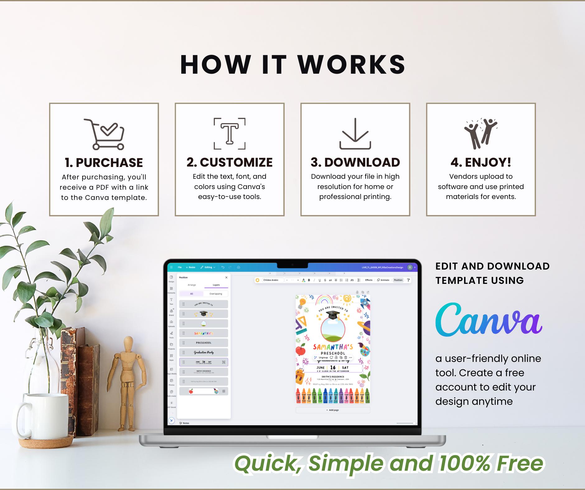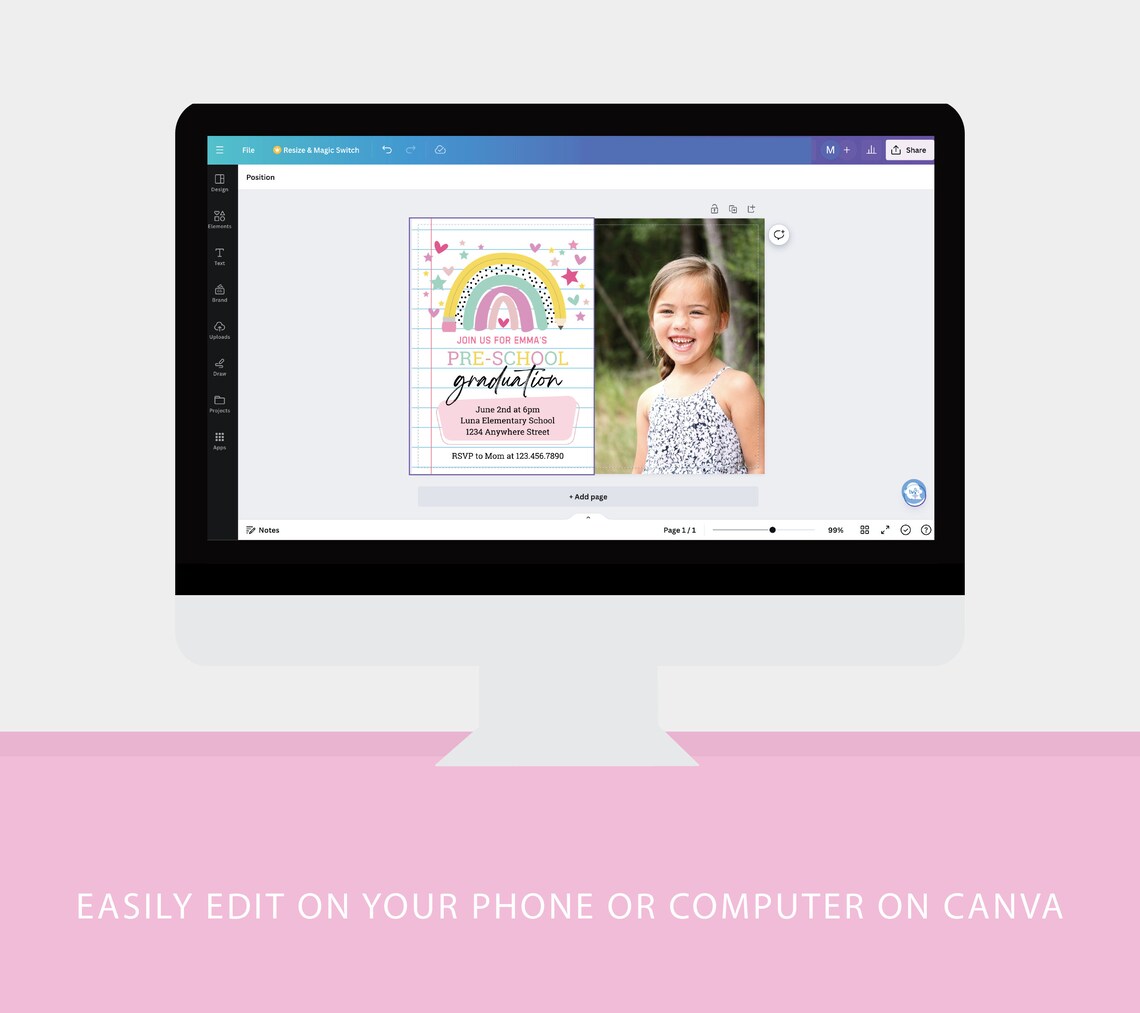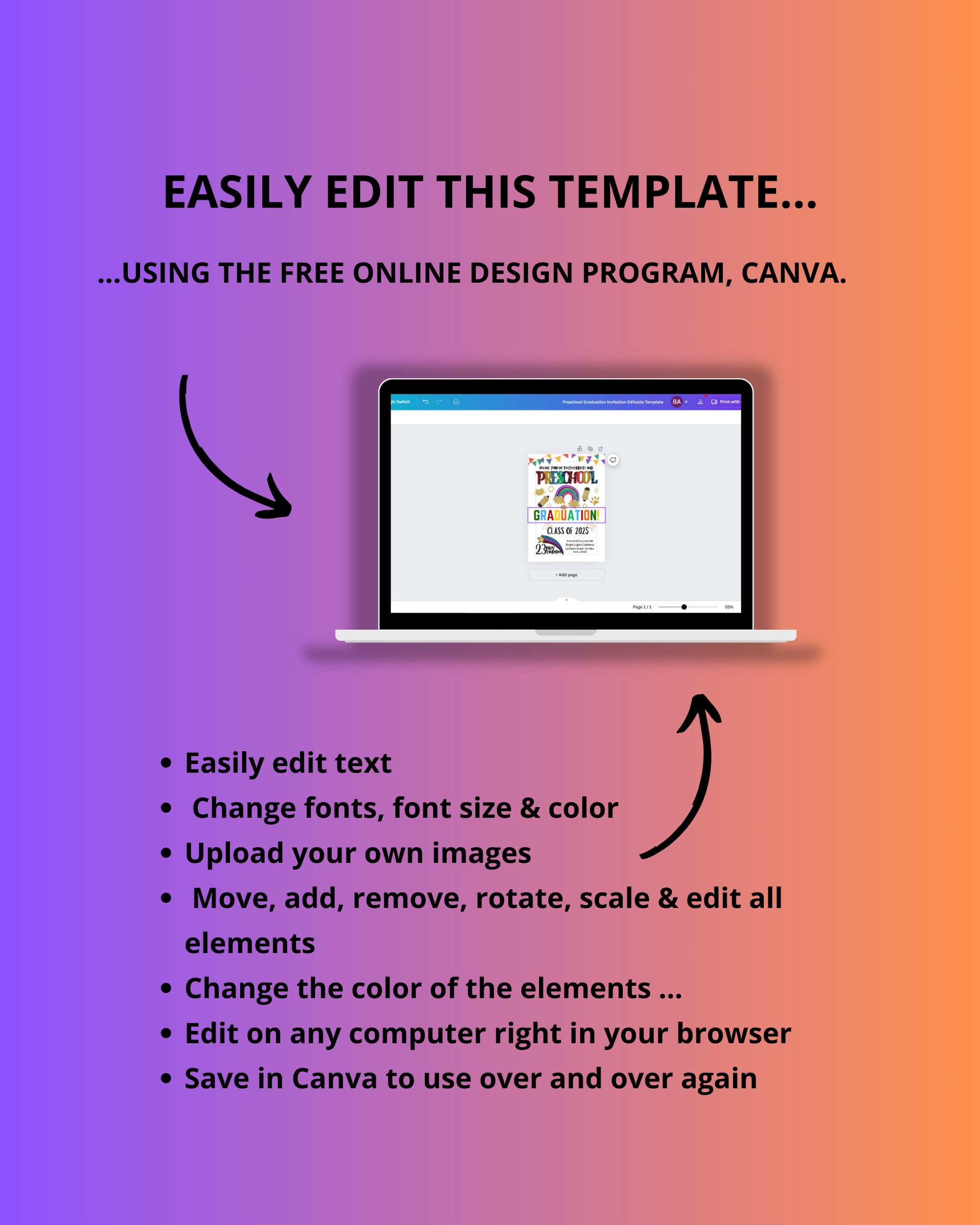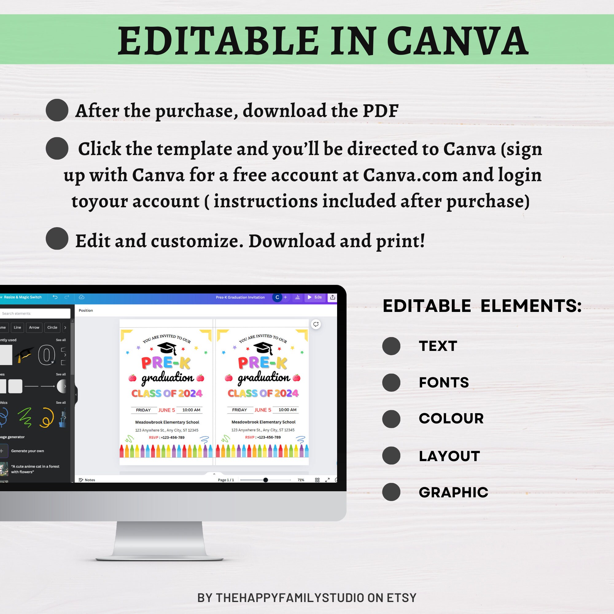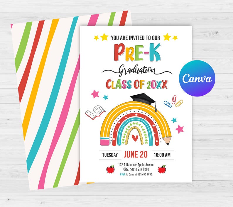 Pre-k Graduation Invitation Template Editable in Canva Digital Download ...