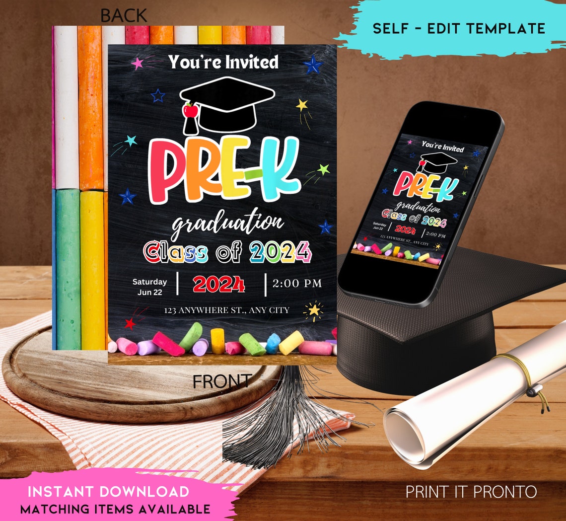 Editable Pre-k Graduation Invitation, Prek Announcement Invite, Pre-k ...