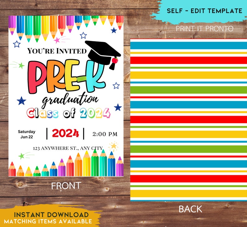 Pre-k Graduation Invitations Template, INSTANT DOWNLOAD, Printable Pre ...