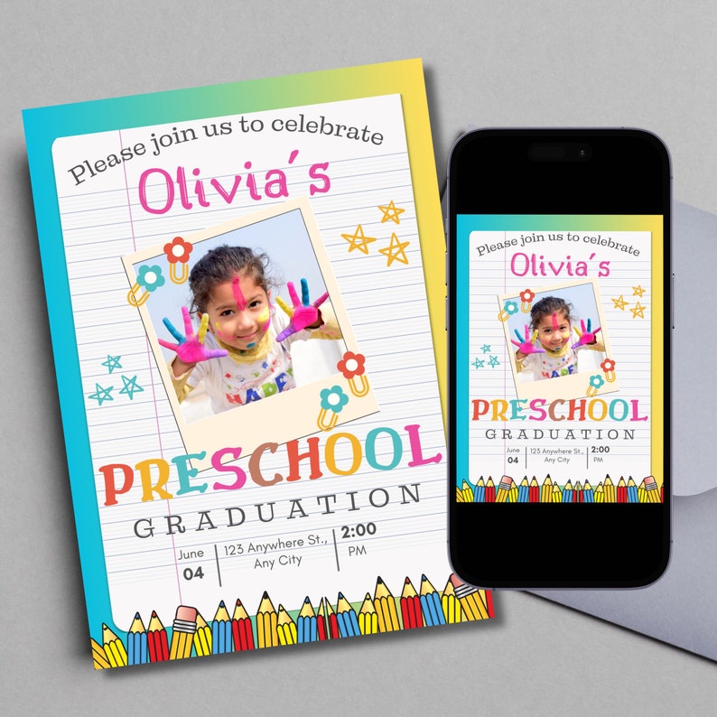 Preschool Graduation Invitation Editable Template, Pre-k Kindergarten ...