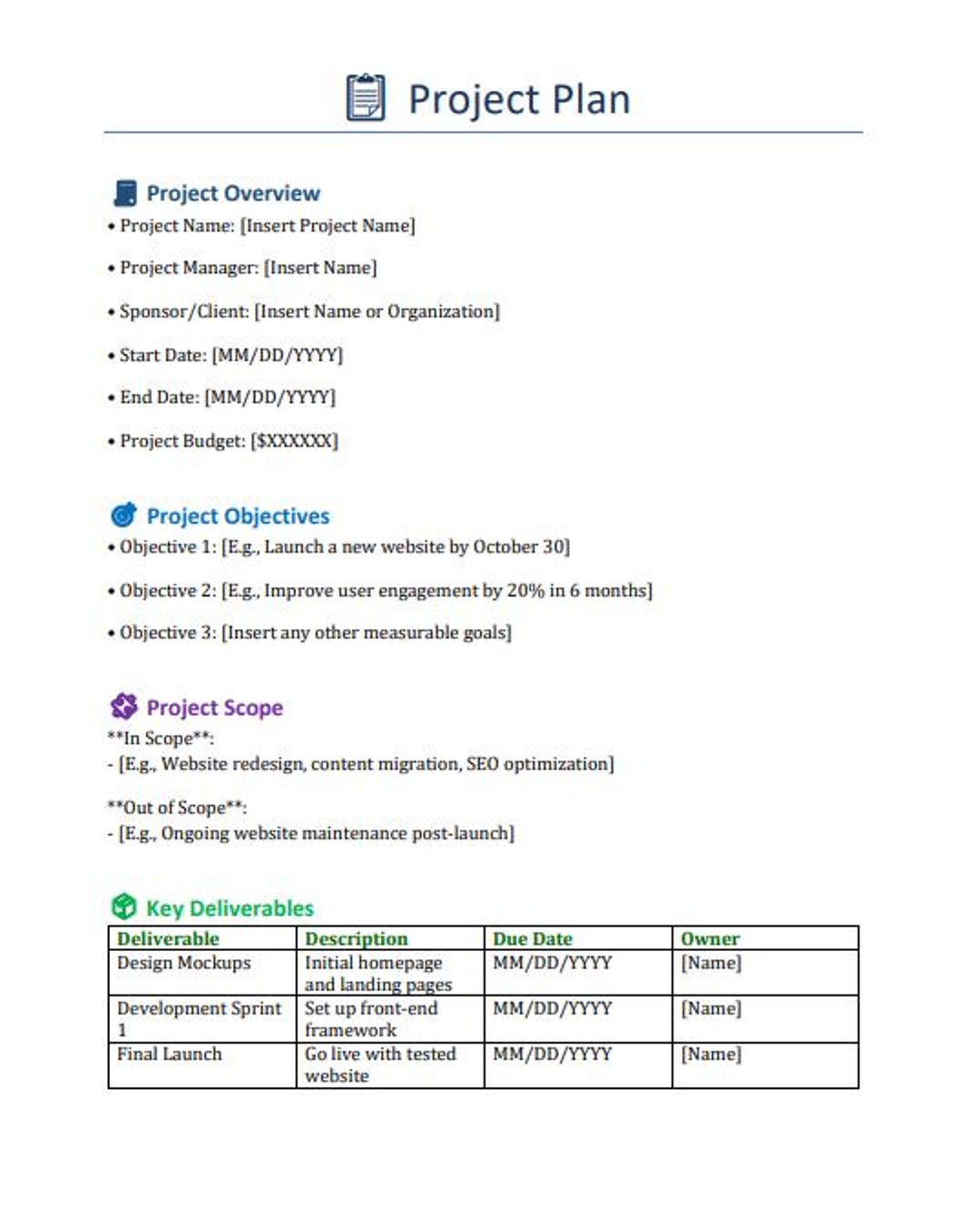 Free Printable Project Plan Templates [Excel, PDF, Word]