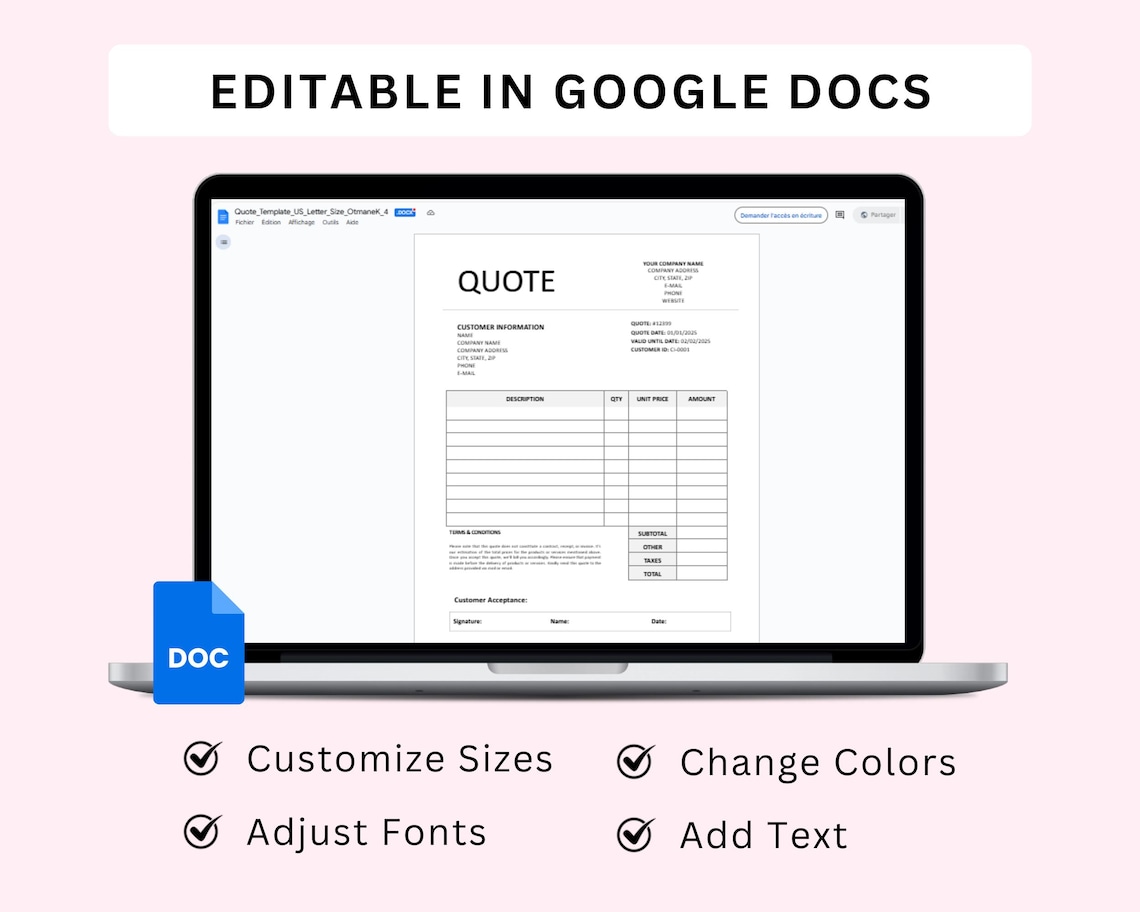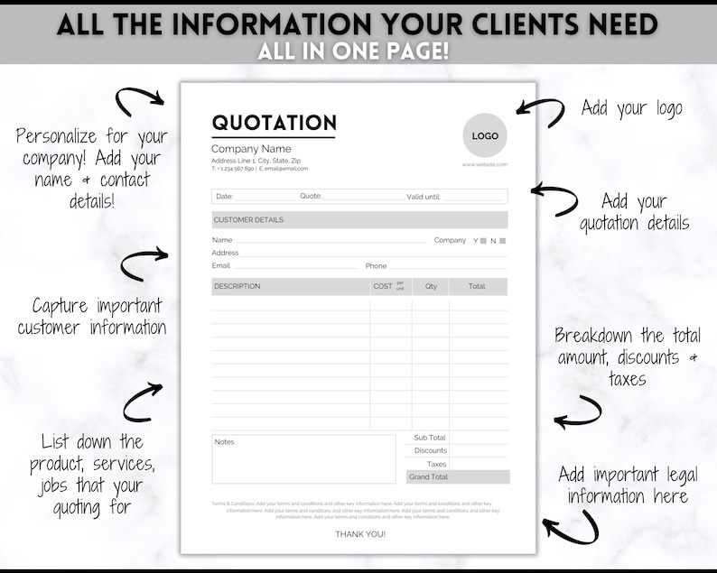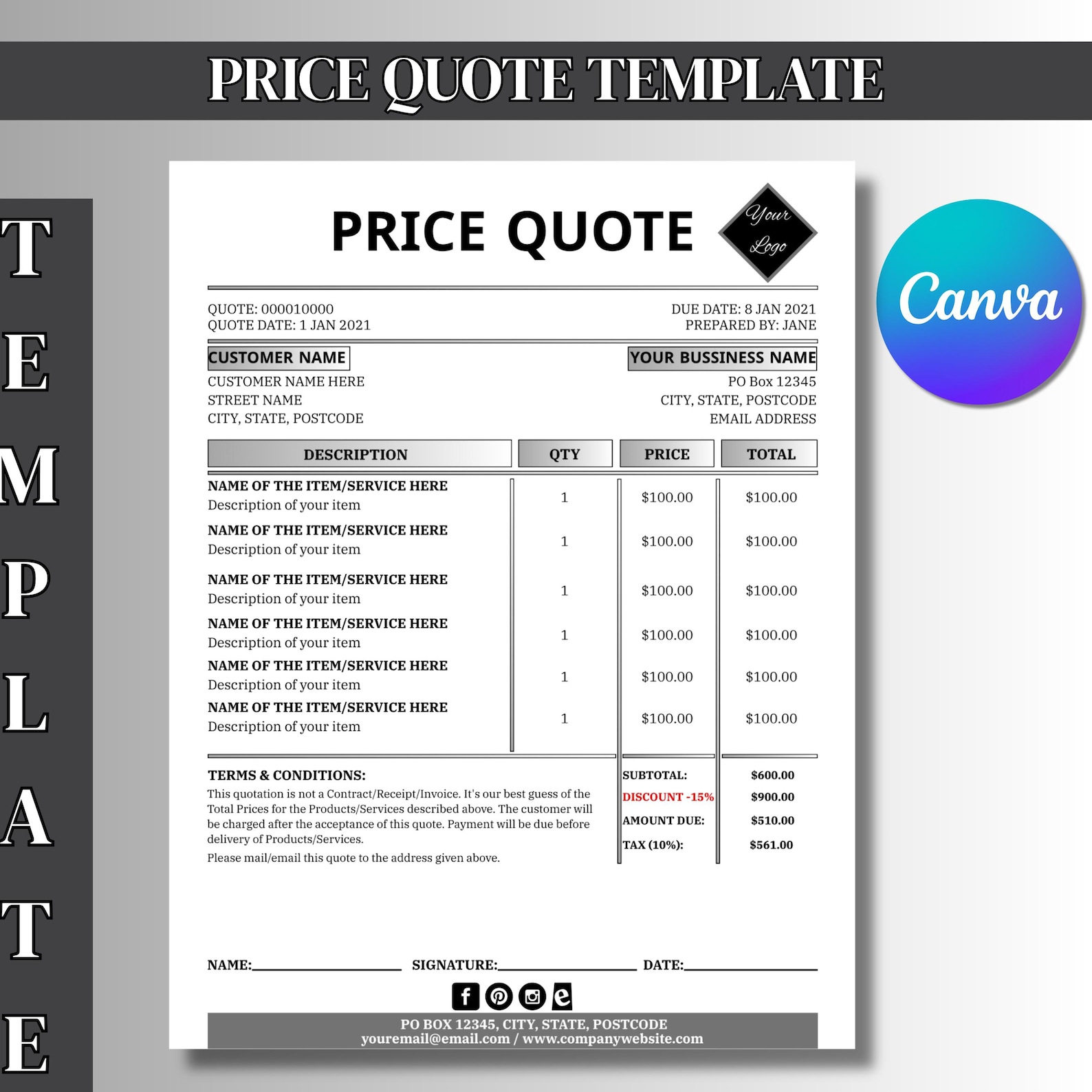 Fully Editable Quote Template PDF Google Docs Microsoft - Etsy