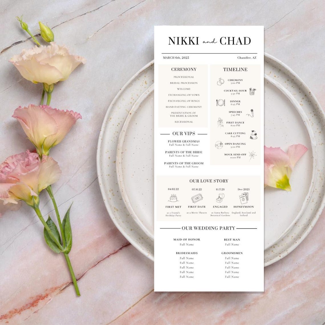 Editable Wedding Program With Icons Timeline Template - Etsy