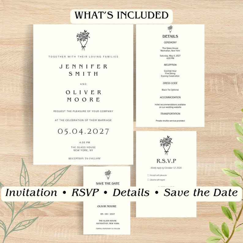 Editable Wedding Invitation Template, Minimal Wedding Invitation Suite ...