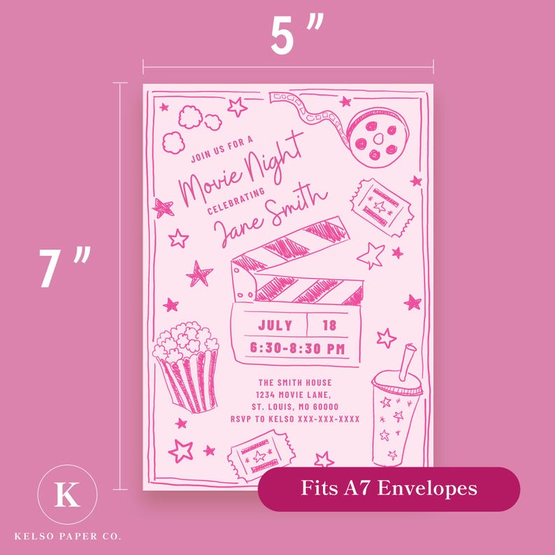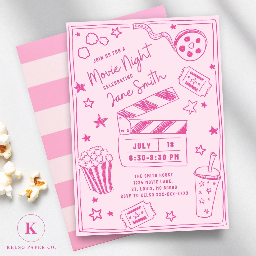 Movie Night Invitation, Editable Template - Etsy