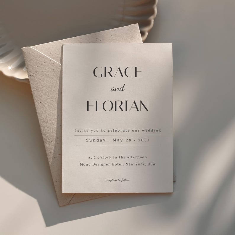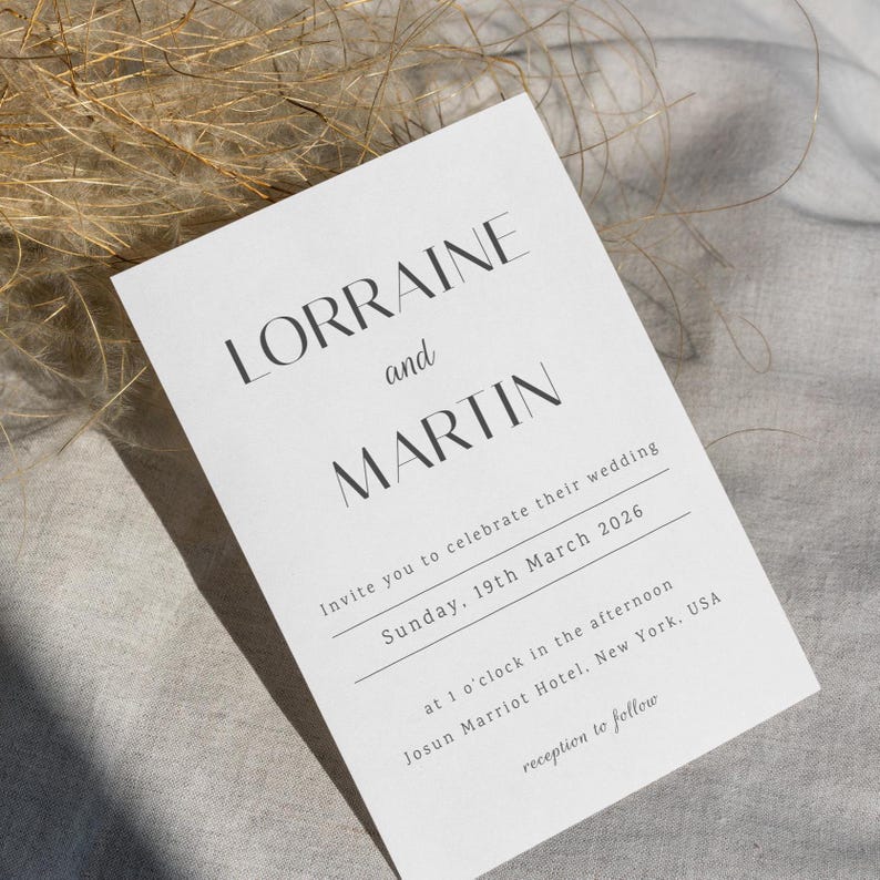 Wedding Invitation Template Editable, Serif Wedding Invite, Modern ...