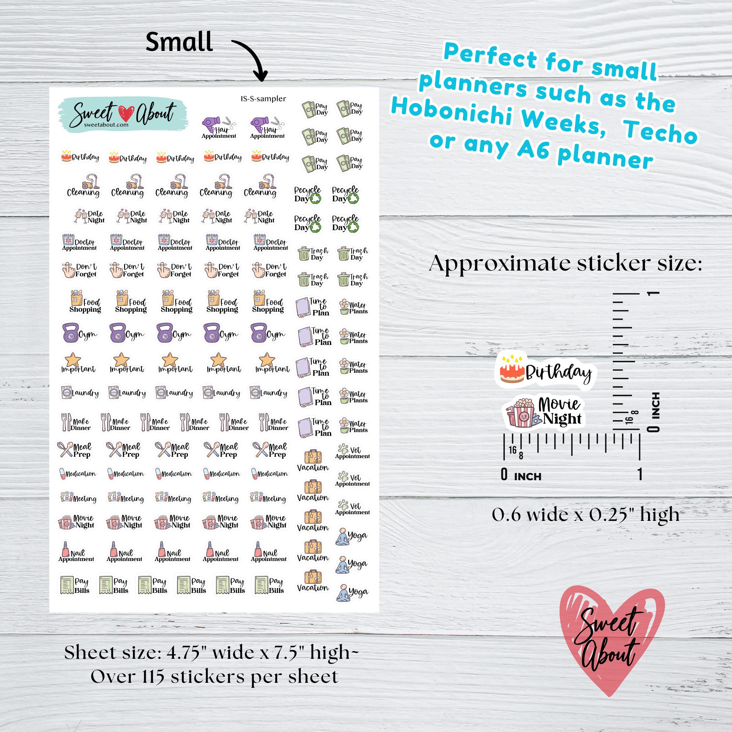 Scripts With Icons Sticker Sampler Sheet – Small & Large Sizes, White ...