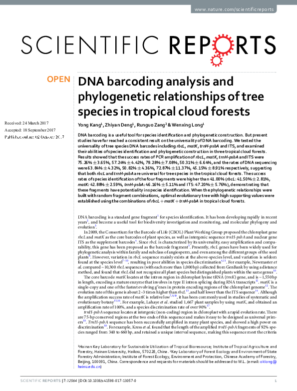 (PDF) DNA barcoding analysis and phylogenetic relationships of tree ...