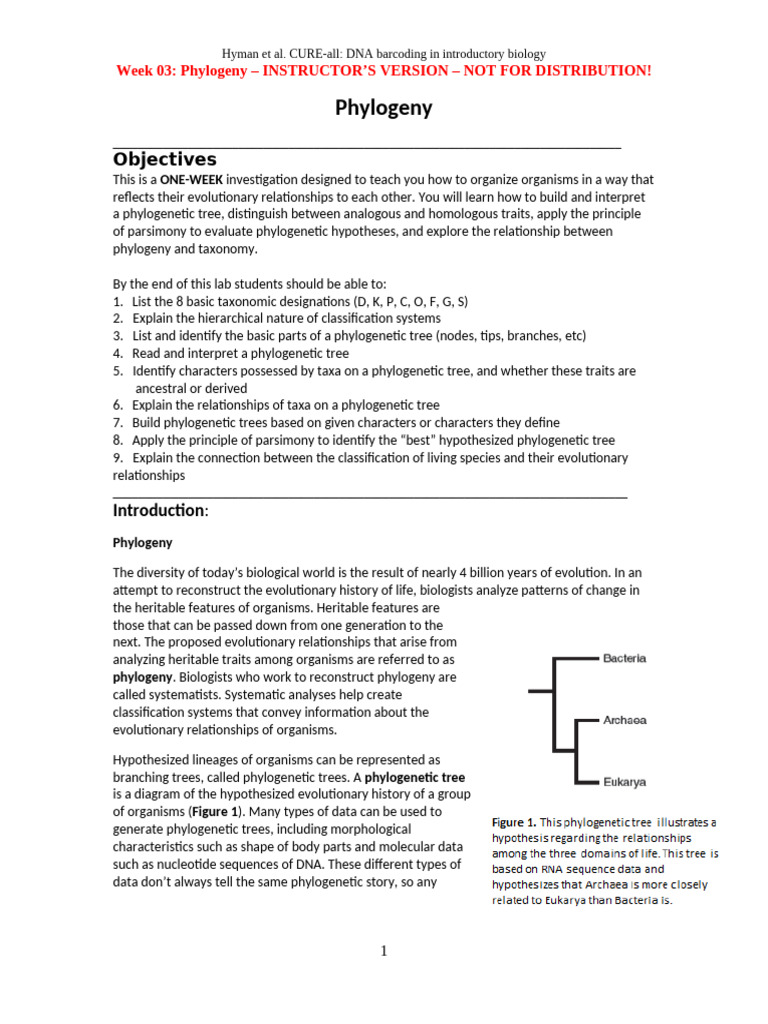S3.2. DNA Barcoding - Week 03 - Phylogeny Handout INSTRUCTOR KEY | PDF ...