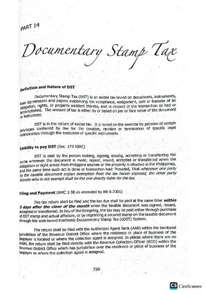 TAX 3 Documentary Stamp Tax (DST) Notes and Principles Overview - Studocu