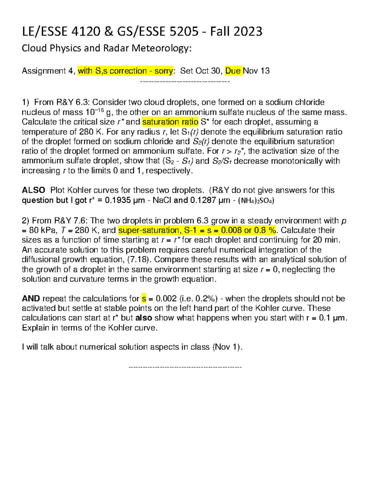 Seminar assignments - Assignment 1 solutions - ECE 4300 Lasers and ...