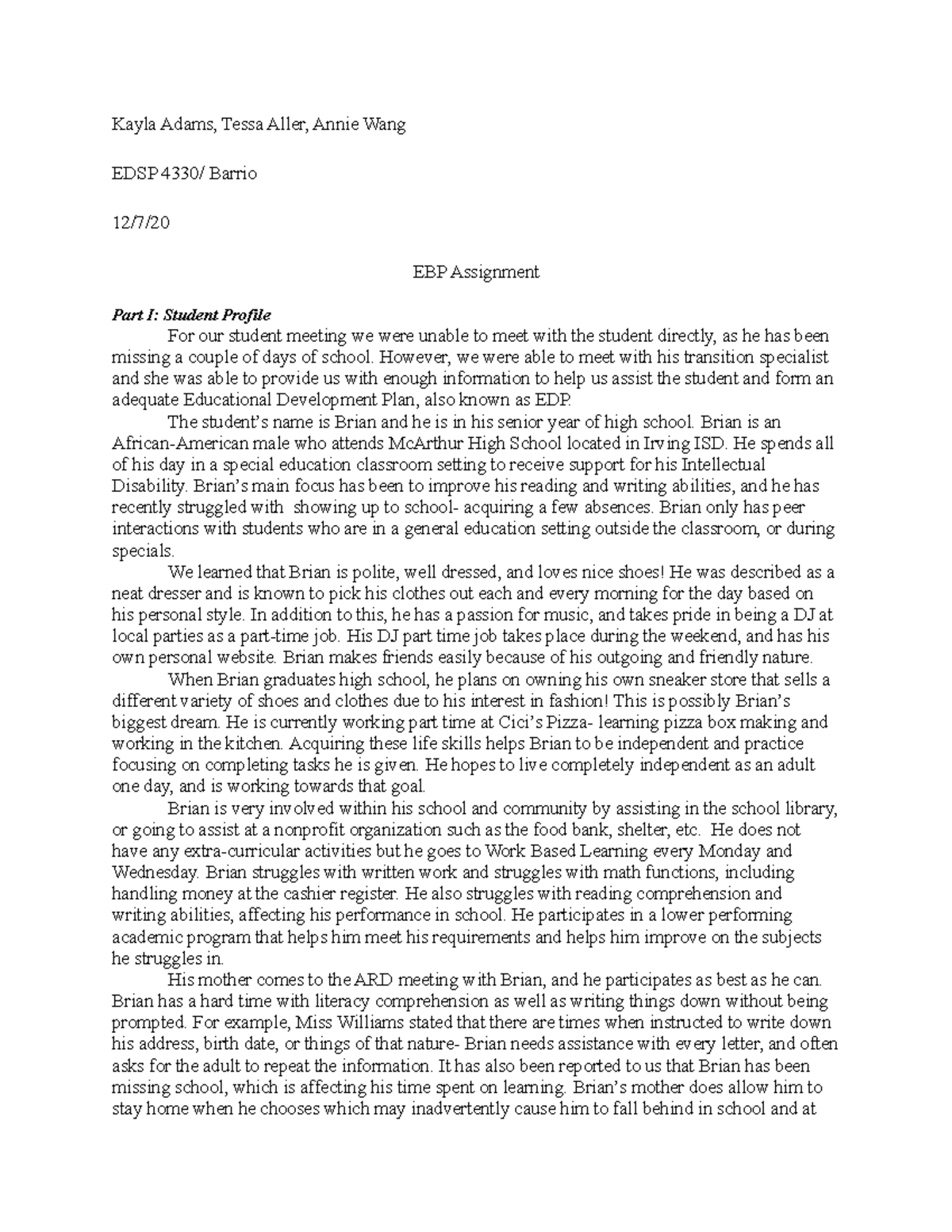 EDSP 4330 EBP Assignment - Kayla Adams, Tessa Aller, Annie Wang EDSP ...