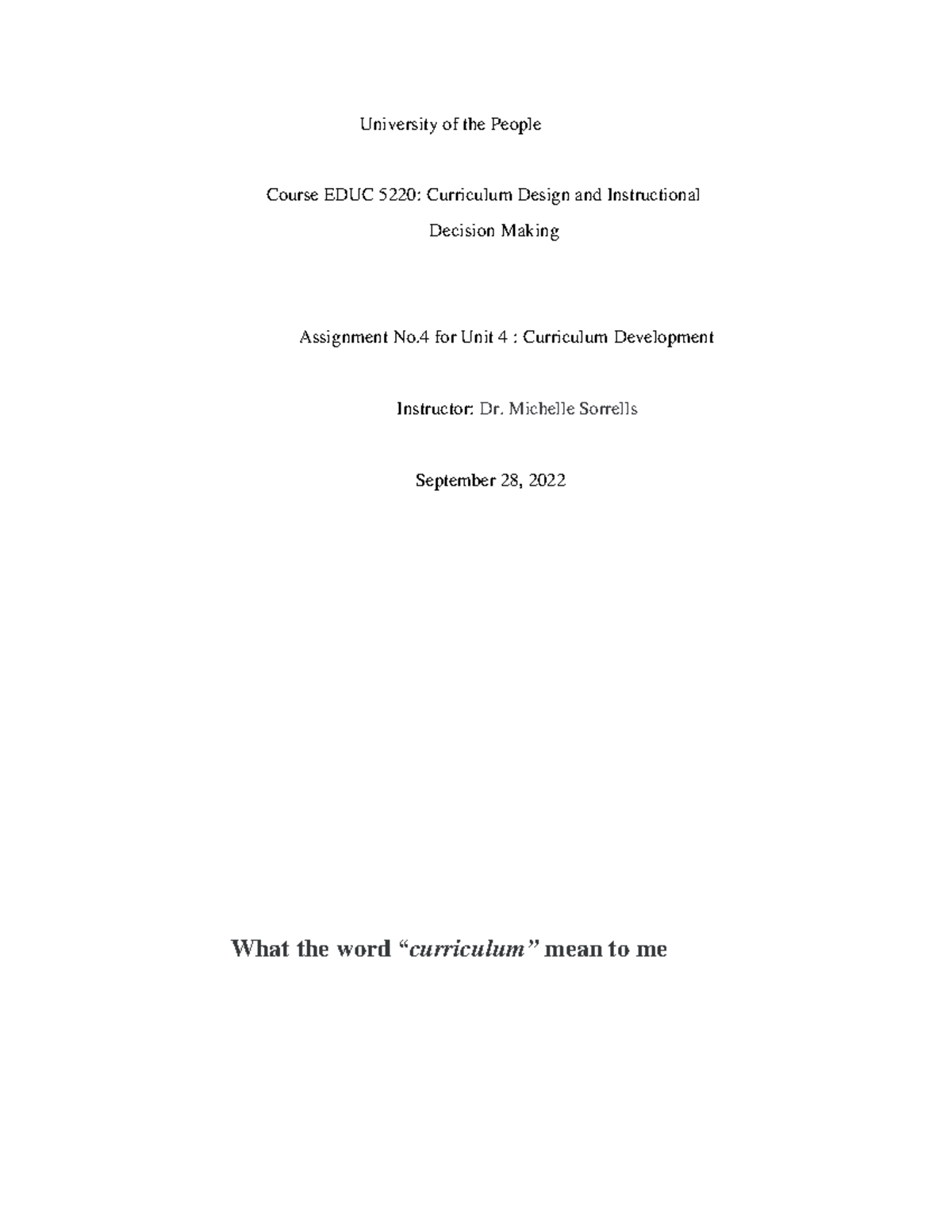Assignment No.4 for Unit 4 EDUC5220 - University of the People Course ...