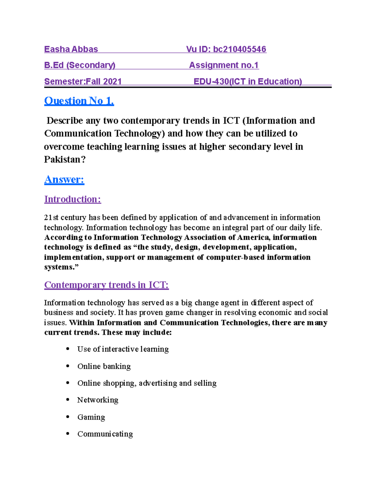 EDU402 Assignment 1 Solution Spring2024 | EDU 402 Assignment 2024 ...