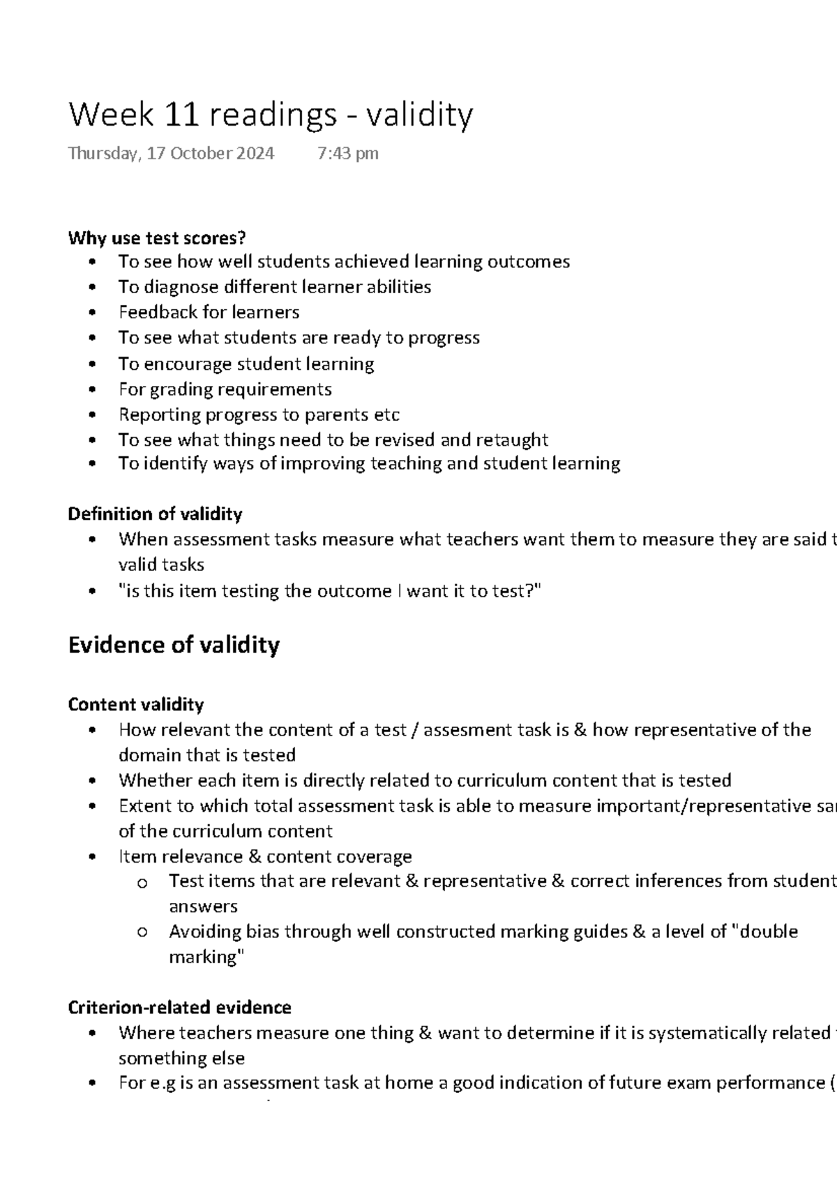 Week 11 readings - validity - Why use test scores? To see how well ...