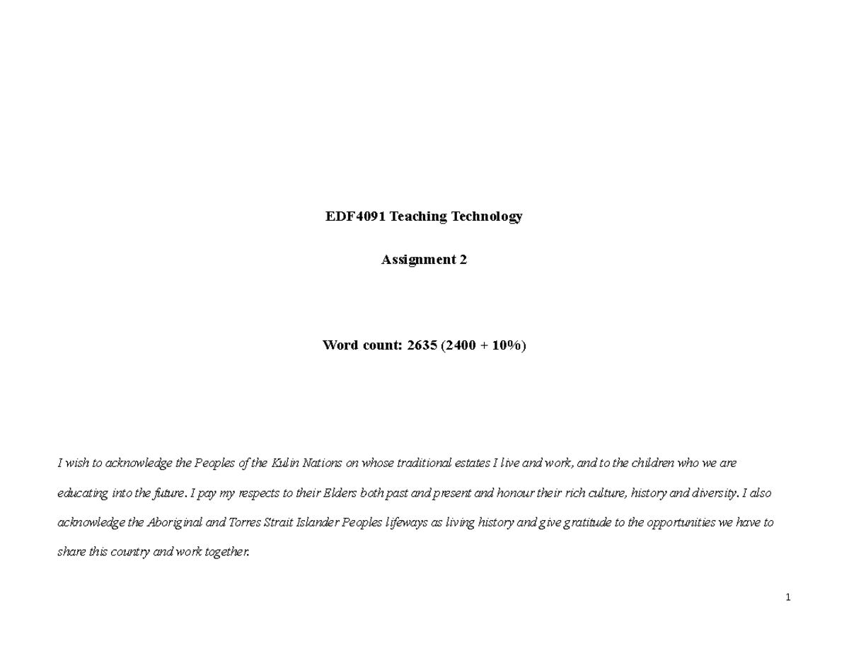 EDF4091 Tech AT2 - Fourth year graduate assignment. - EDF4091 Teaching ...