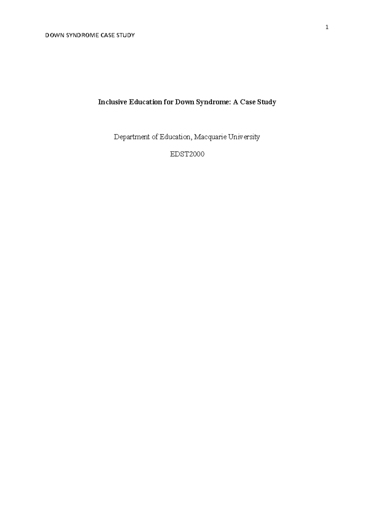 EDST2000 Case study Down Syndrome - DOWN SYNDROME CASE STUDY Inclusive ...