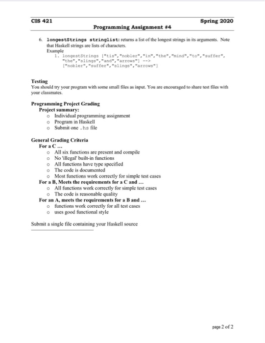 CIS 421 Spring 2020 Programming Assignment #4 Hello | Chegg.com