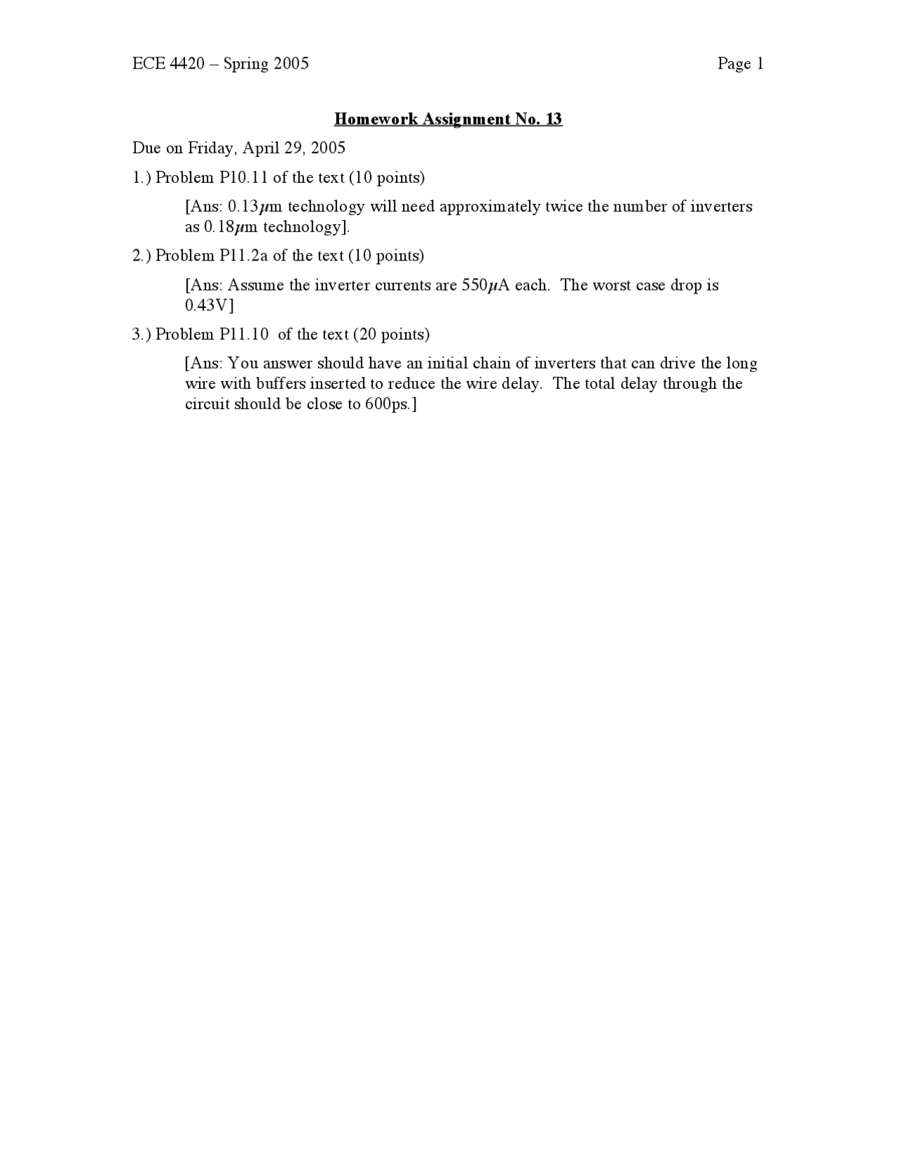 Digital Integrated Circuits - Assignment 13 - Spring 2005 | ECE 4420 ...