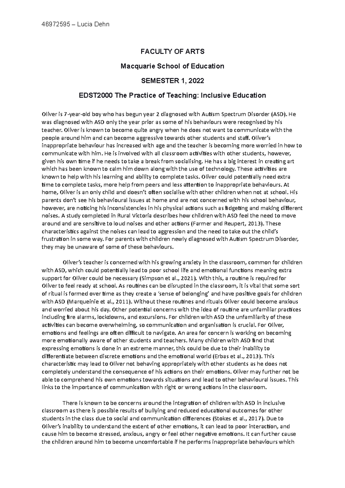 EDST2000 Case Study - FACULTY OF ARTS Macquarie School of Education ...