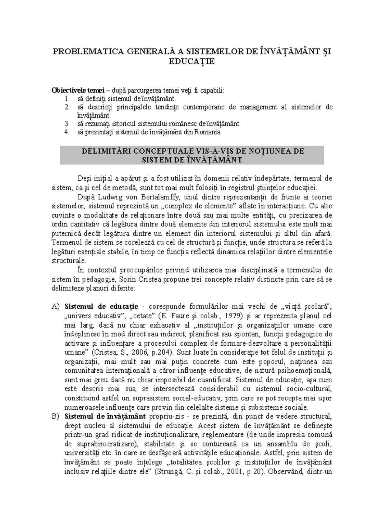 Cursul 4 Sistemul de invatamant - PROBLEMATICA GENERALĂ A SISTEMELOR DE ...