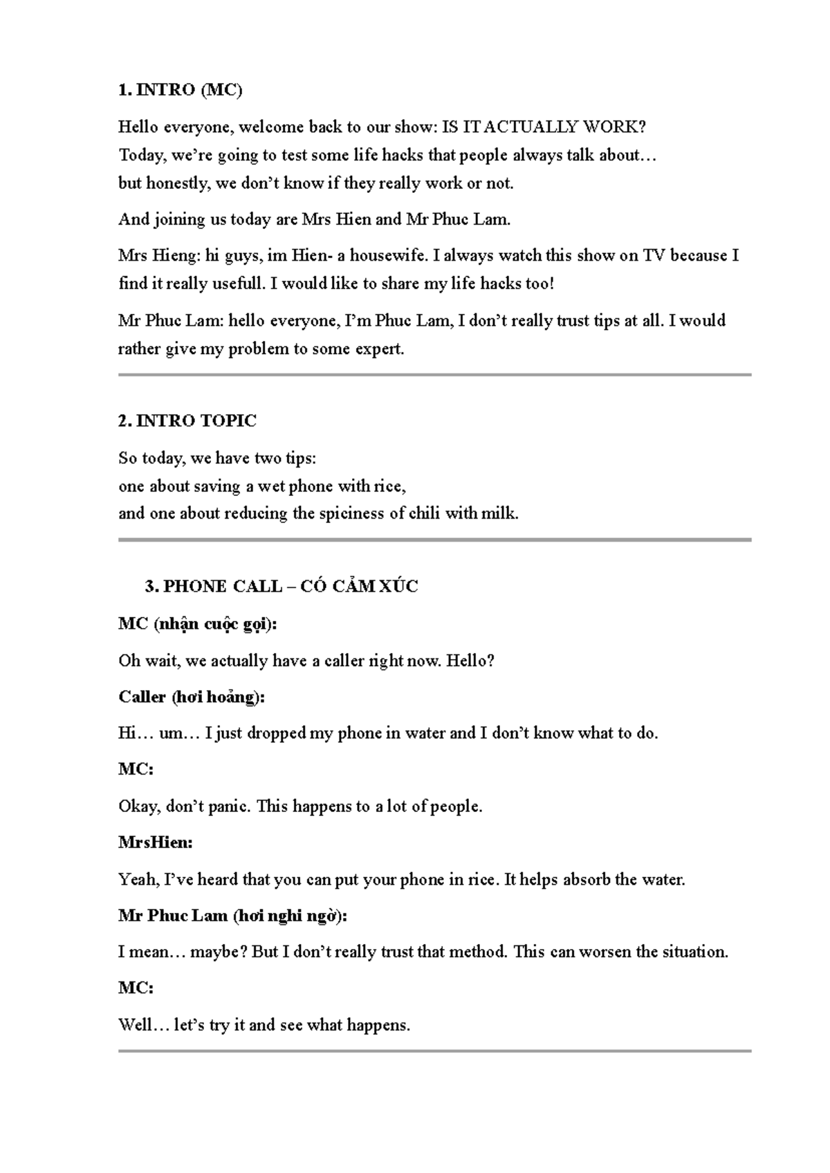 Script for Video Project: Life Hacks Tested (MC) - Studocu