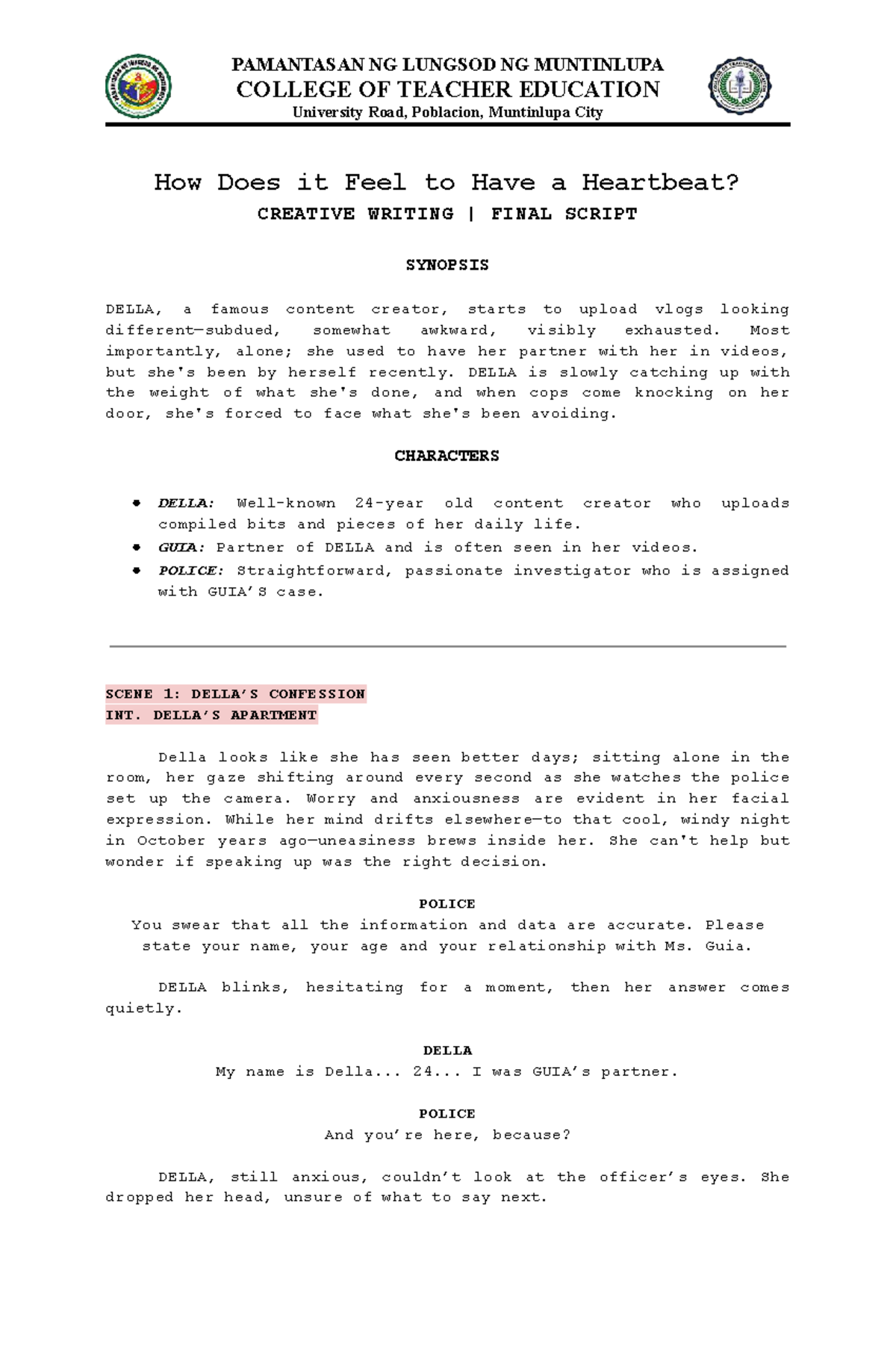 PAMANTASAN NG LUNGSOD NG MUNTINLUPA BSED 4ENGLISH Creative Writing ...