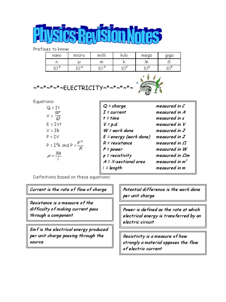 Physics Electricity Notes - Empty | PDF | Electric Current | Electric ...