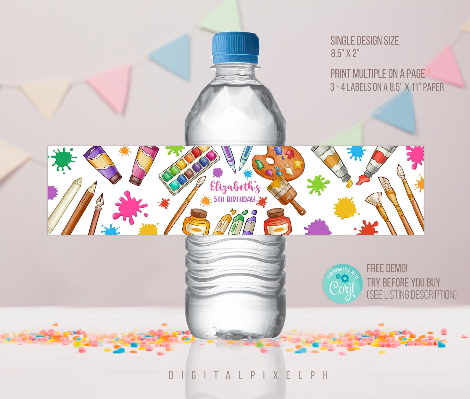 Editable Art Party Water Bottle Label Template, Painting Label (digital ...