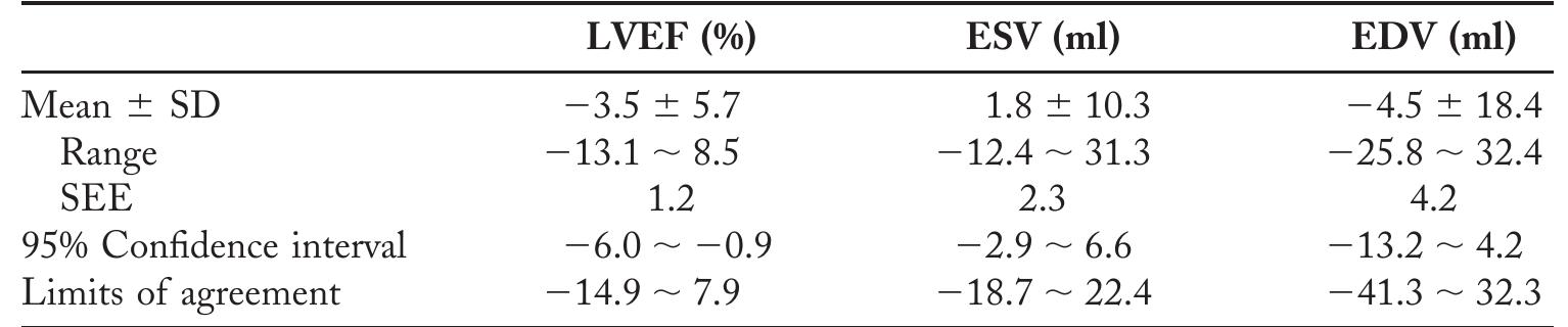 Intra-and Interobserver Agreement for Mean LVEF, ESV, and EDV ...