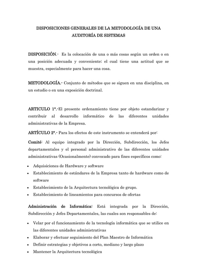 DISPOSICIONES GENERALES DE UNA AUDITORIA DE SISTEMAS | PDF