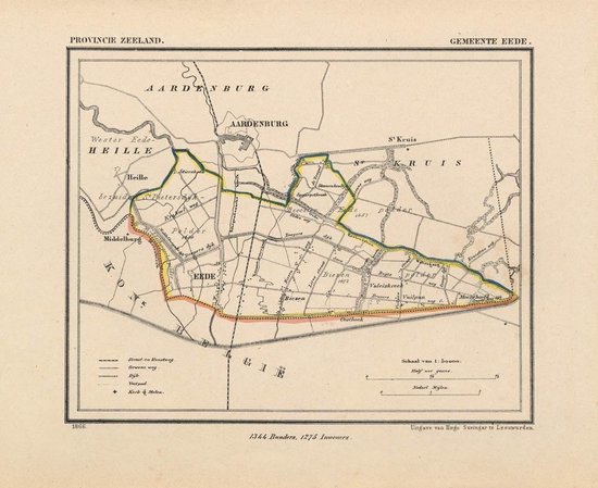 Historische kaart, plattegrond van gemeente Eede in Zeeland uit 1867 ...