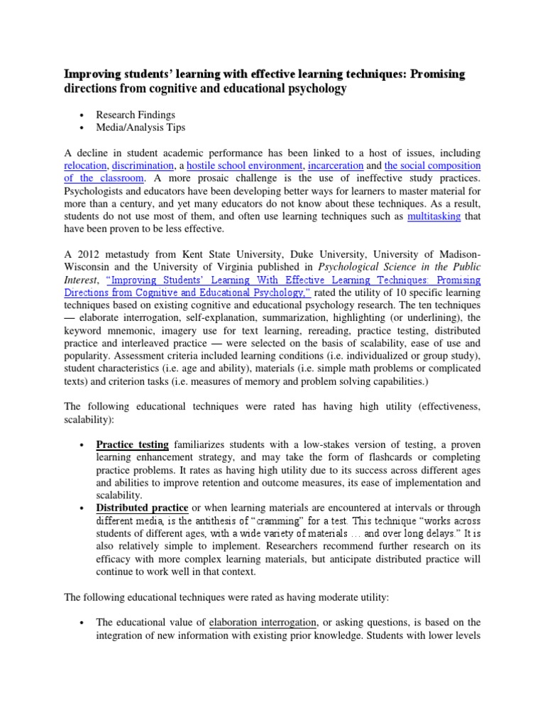 Effective Learning Techniques and Methods | Download Free PDF ...