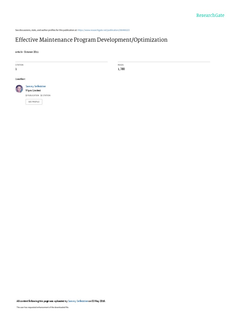 Effective Maintenance Program DevelopmentOptimizat | PDF | Reliability ...