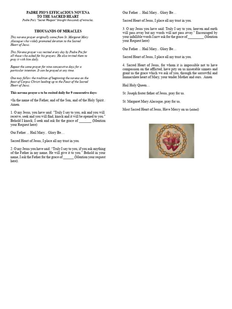 Efficacious Novena To The Sacred Heart of Jesus | PDF | Prayer | Worship