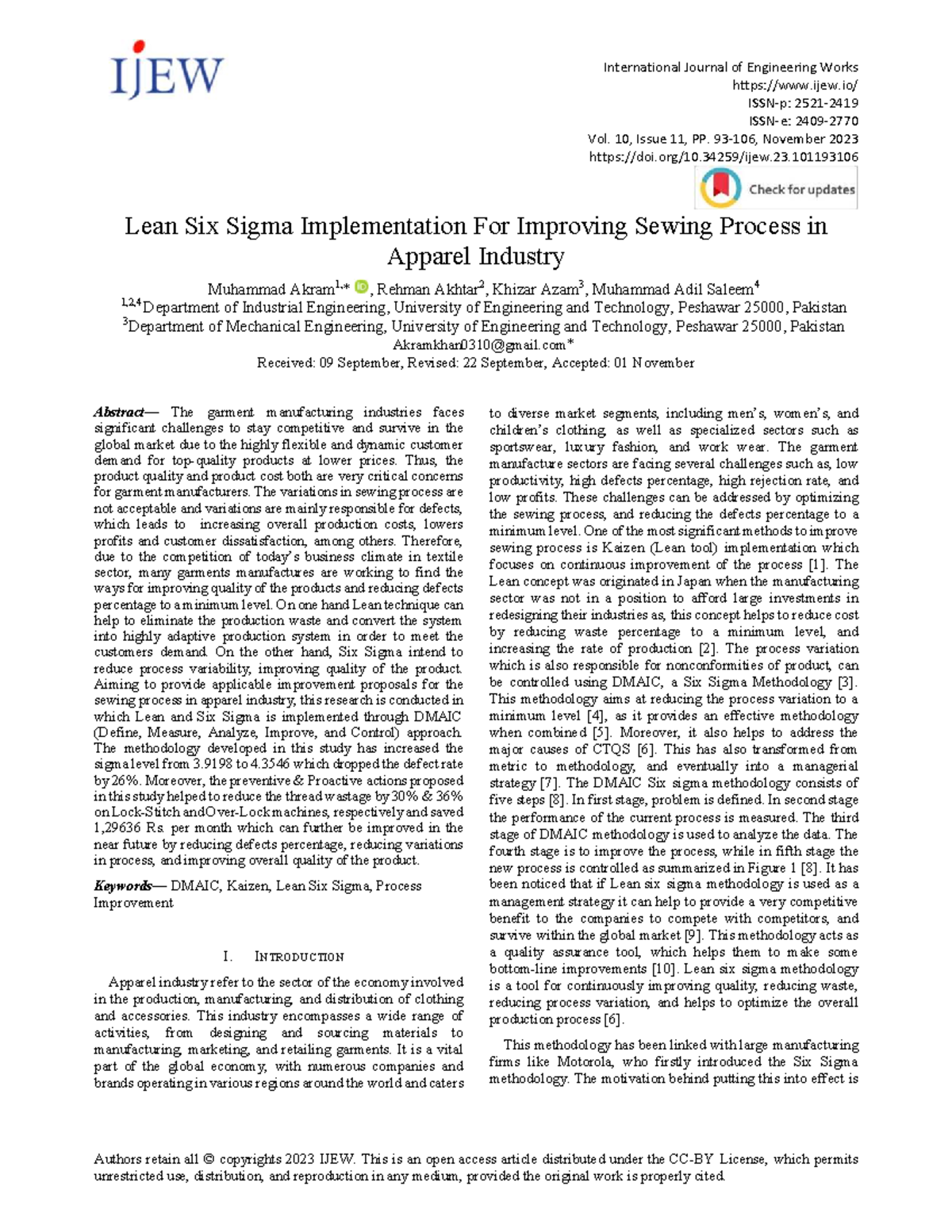 Lean Six Sigma Implementation for Sewing Process Improvement in Apparel ...
